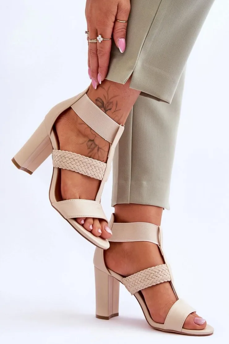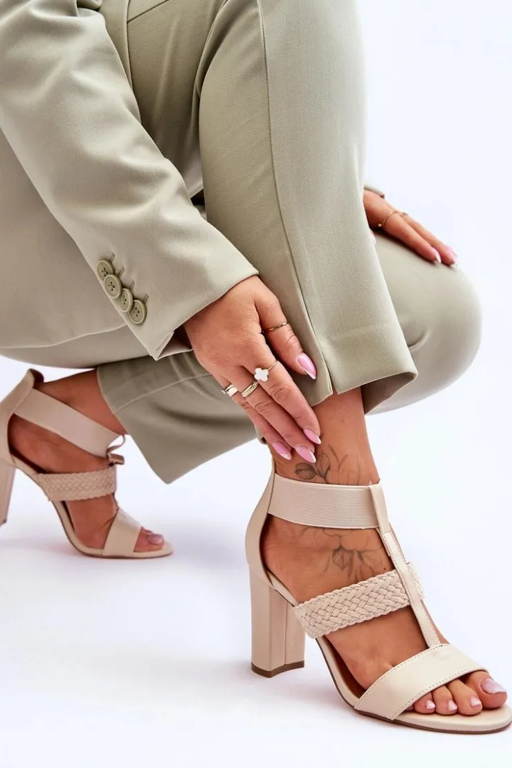 Damskie sandałki o fasonie botków świetnie sprawdzą się w cieplejsze dni. Model ten został wykonany z eko skóry. Zostały osadzone na stabilnym obcasie w postaci słupka. Sandałki posiadają na środku pleciony pasek oraz u góry gumkę pozwalającą na odpowiednie dopasowanie do tęgości nogi. Buty te posiadają miękką wkładkę. Przy wyborze rozmiaru prosimy sugerować się tabelą rozmiarów.
