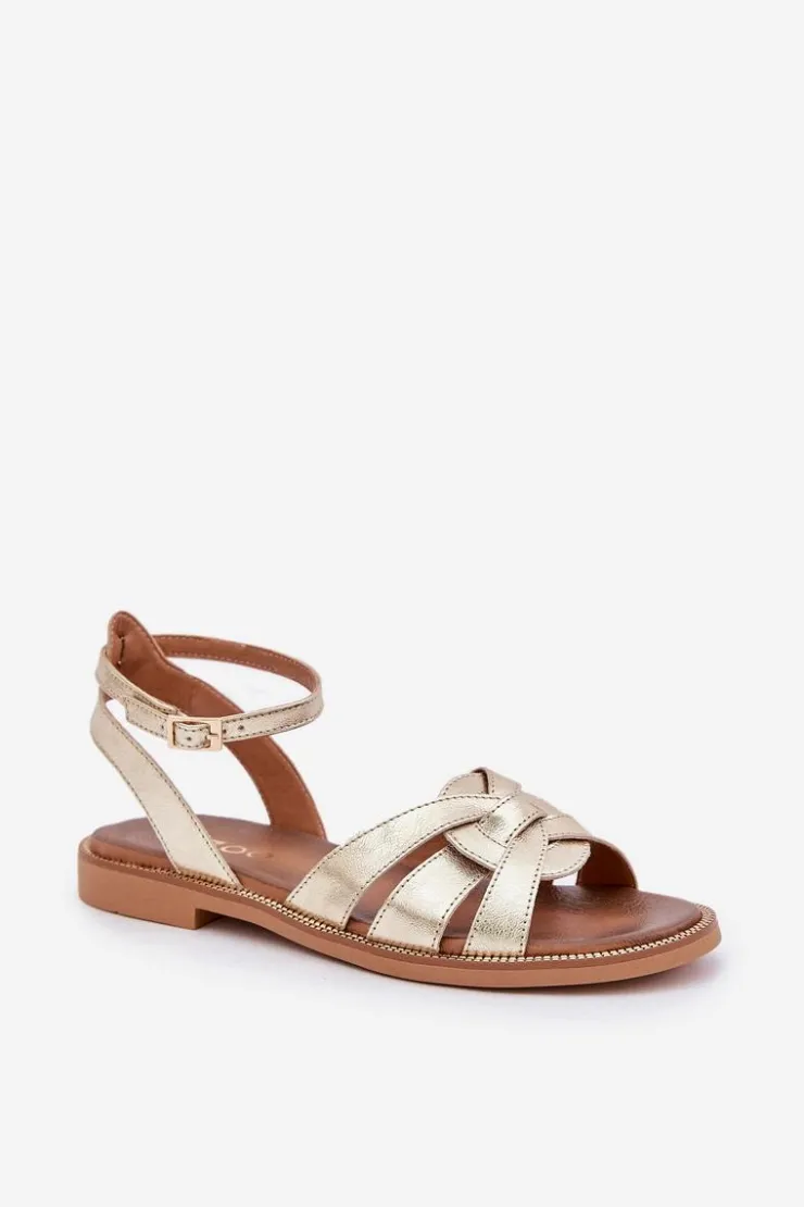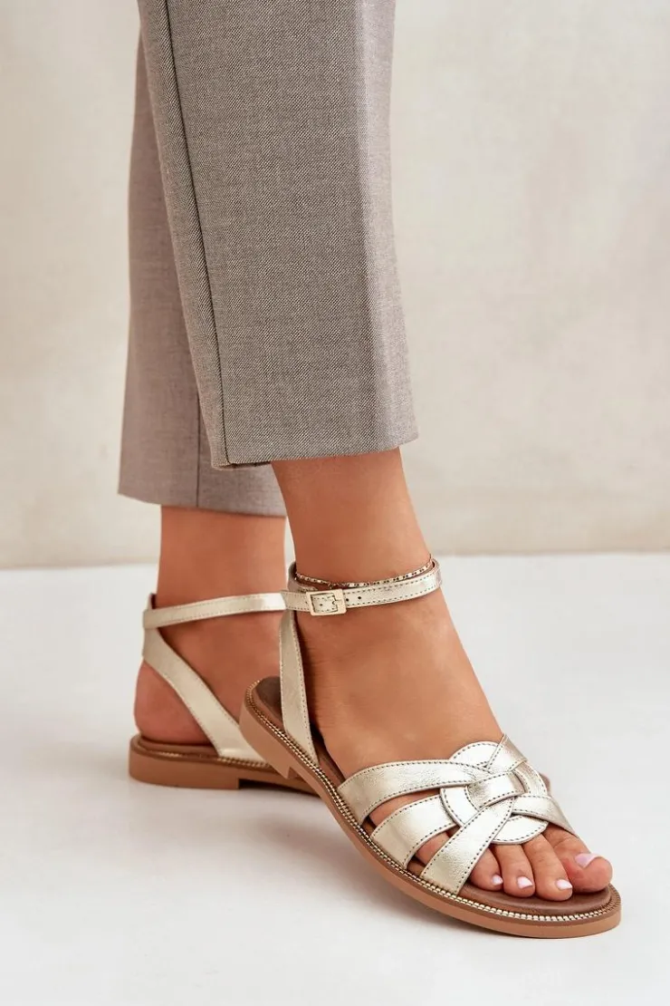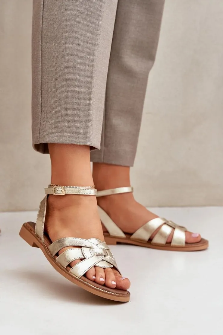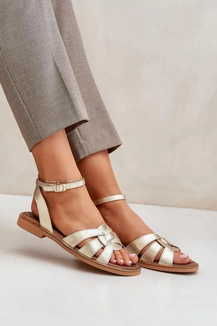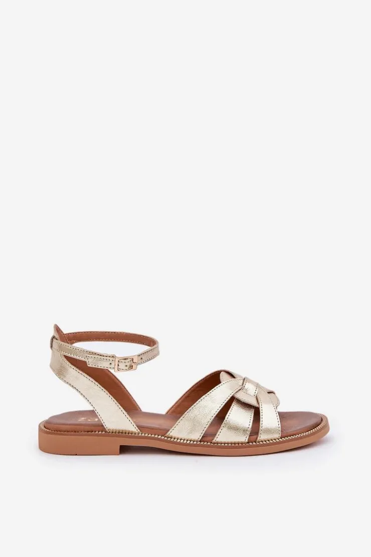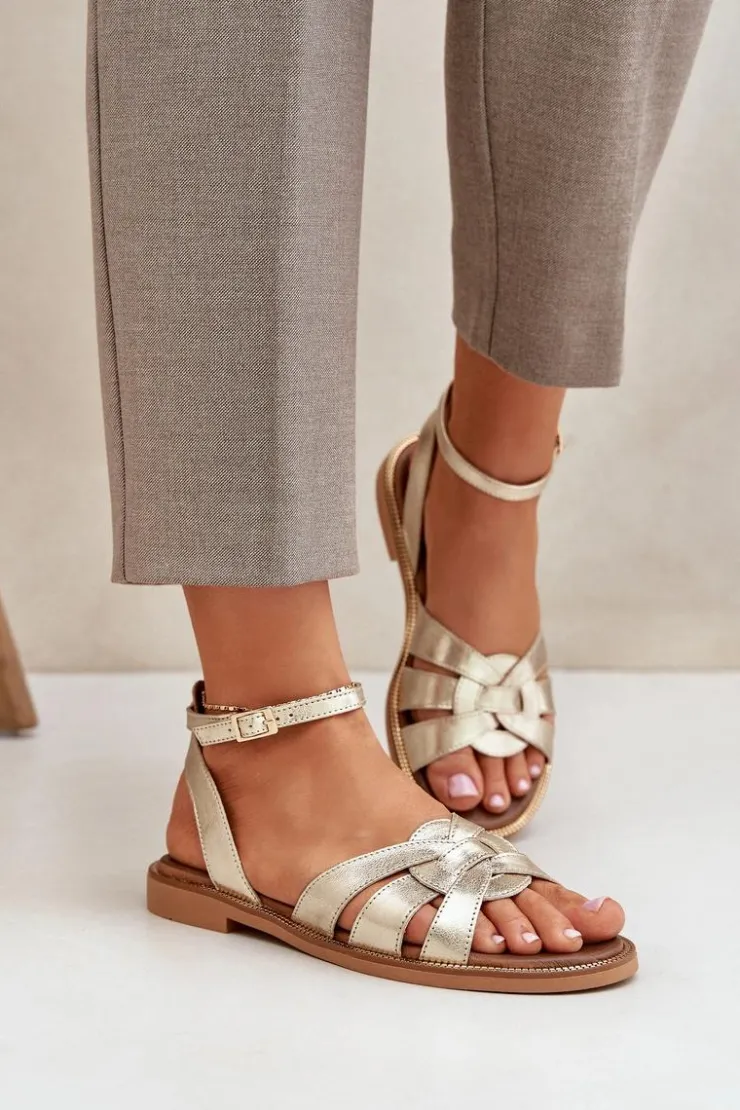 Damskie Boto Skórzane Sandały Damskie Na Płaskim Obcasie Zazoo 3688 Złote