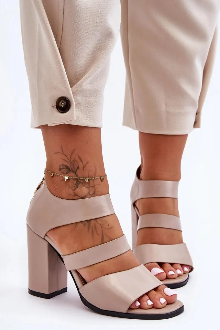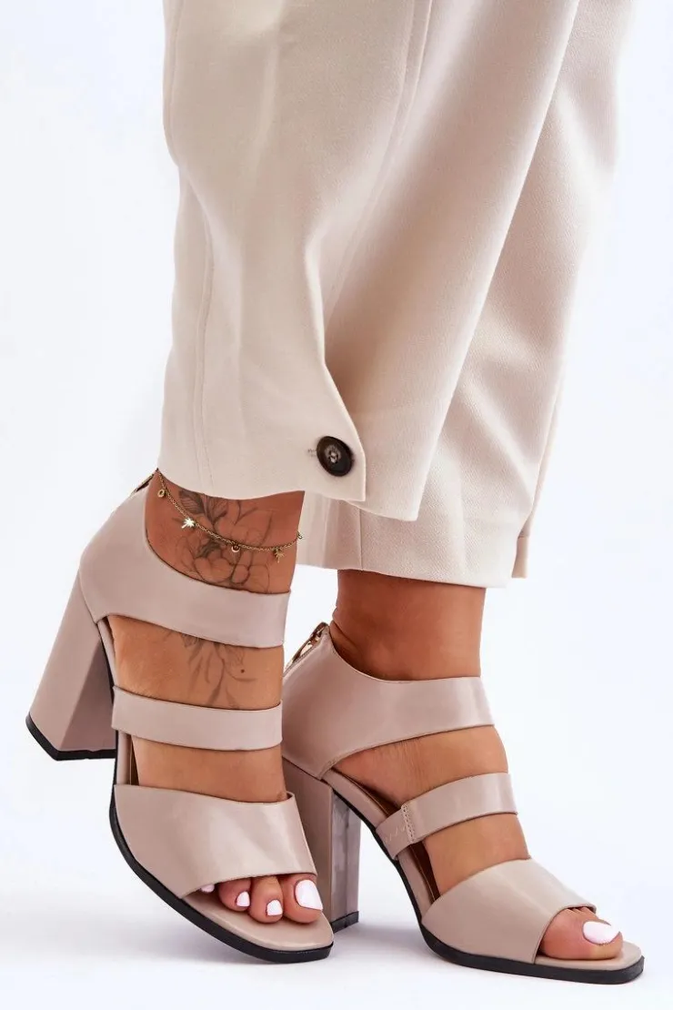 Damskie sandałki to MUST HAVE na ważne uroczystości i spotkania w letnie dni! Model ten został wykonany z eko skóry. Idealne na cieplejsze dni! Miękka wkładka ze skóry zapewni komfortowe użytkowanie obuwia. Sandałki posiadają zapinanie z tyłu cholewki na suwak. Model ten został osadzony na stabilnym obcasie w postaci słupka. Przy wyborze rozmiaru prosimy sugerować się tabelą rozmiarów.
