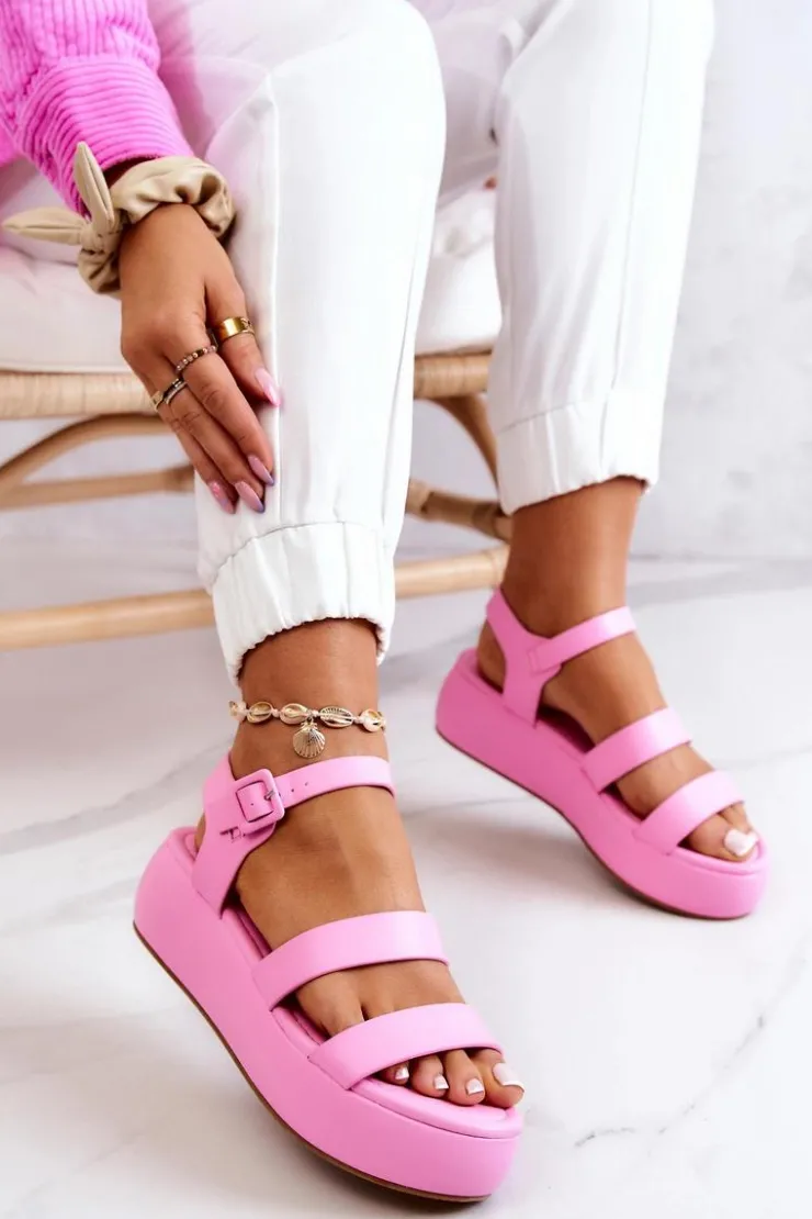 Wspaniałe sandałki z regulowanym paskiem zapinanym na sprzączkę. Możesz dopasować je do tęgości nogi. Wykonane z eko skóry. Posiadają platformę oraz koturn. Miękka wkładka zapewni wygodę przez cały dzień. Sandały to idealne buty na lato! Koniecznie powinnaś je mieć! Przy wyborze rozmiaru prosimy kierować się tabelą rozmiarów.