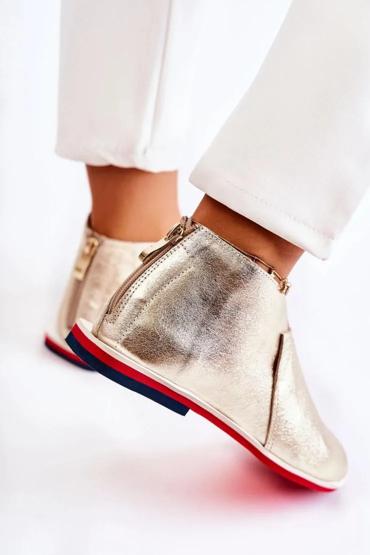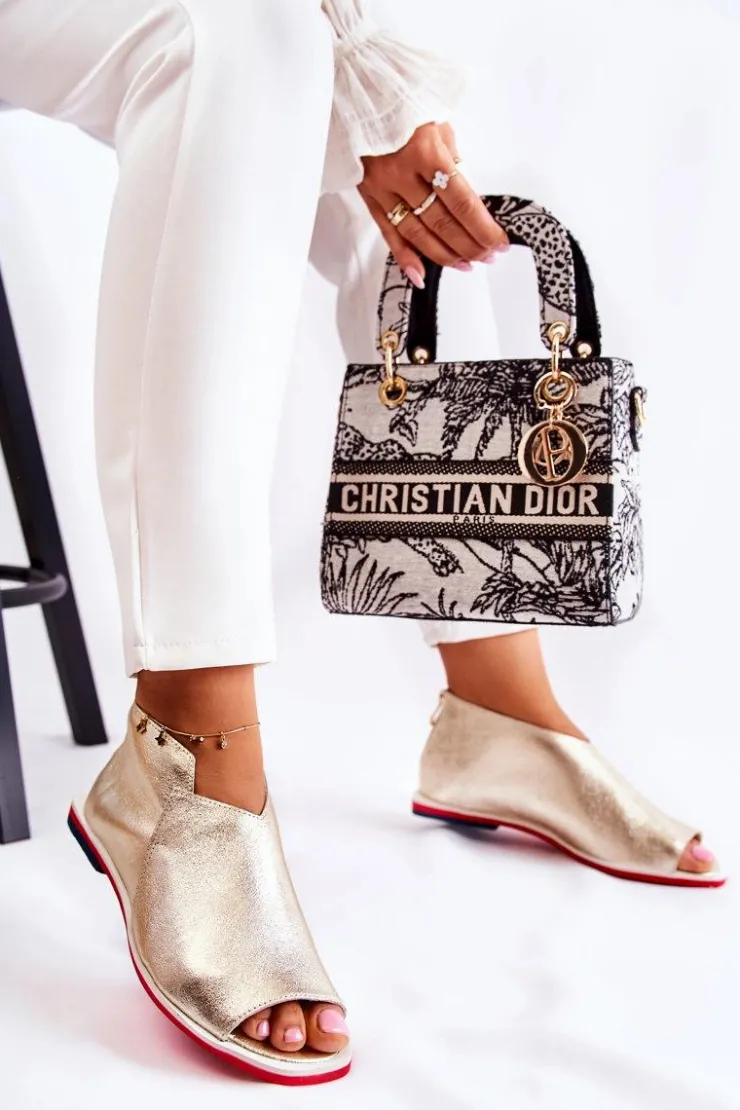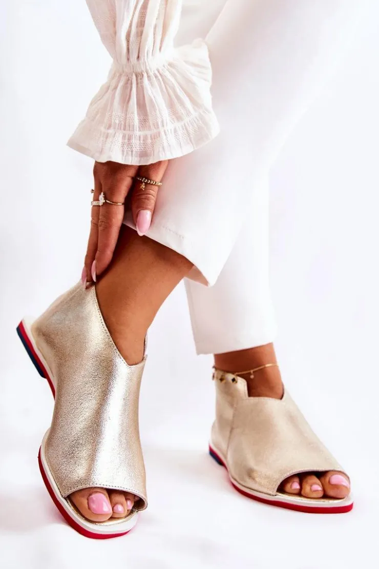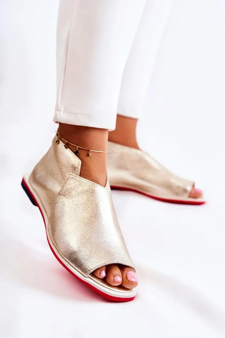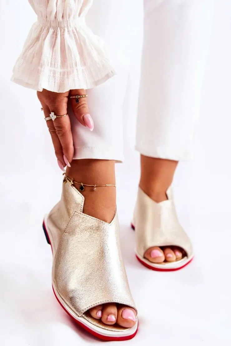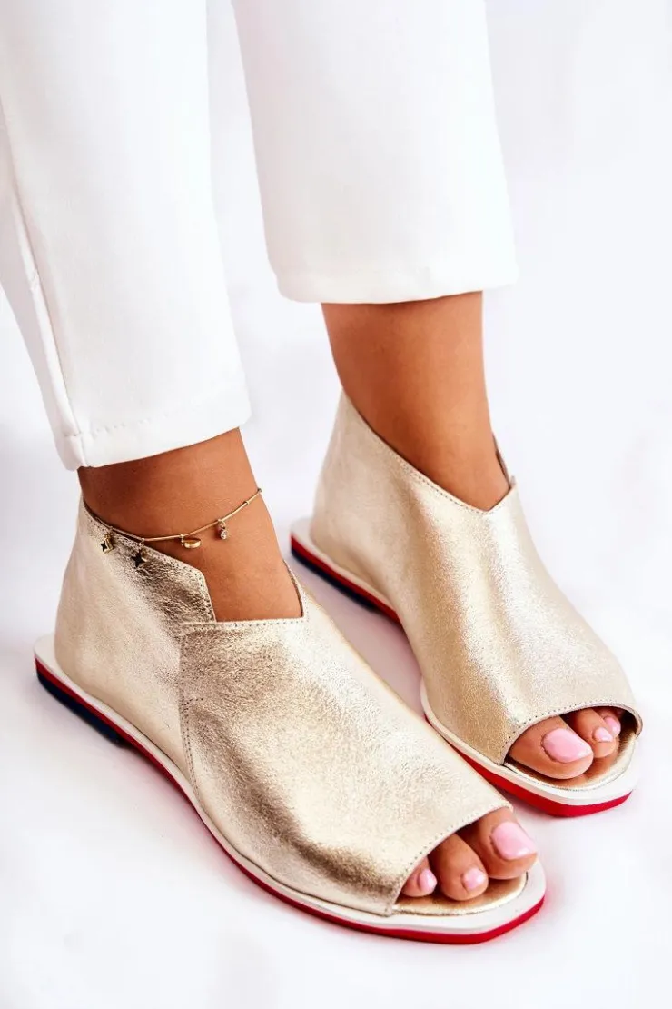 Modne sandały zostały wykonane z naturalnej skóry. Cholewka do kostki. Model ten posiada odkryte palce oraz suwak na zapiętku ułatwiający zakładanie obuwia. Miękka, skórzana wkładka zapewni komfort nawet w upalne dni. Płaski obcas sprawi, że będziesz czuć się w nich stabilnie. Koniecznie sprawdź także pozostałe modele sandałek! Przy wyborze rozmiaru prosimy sugerować się tabelą rozmiarów.