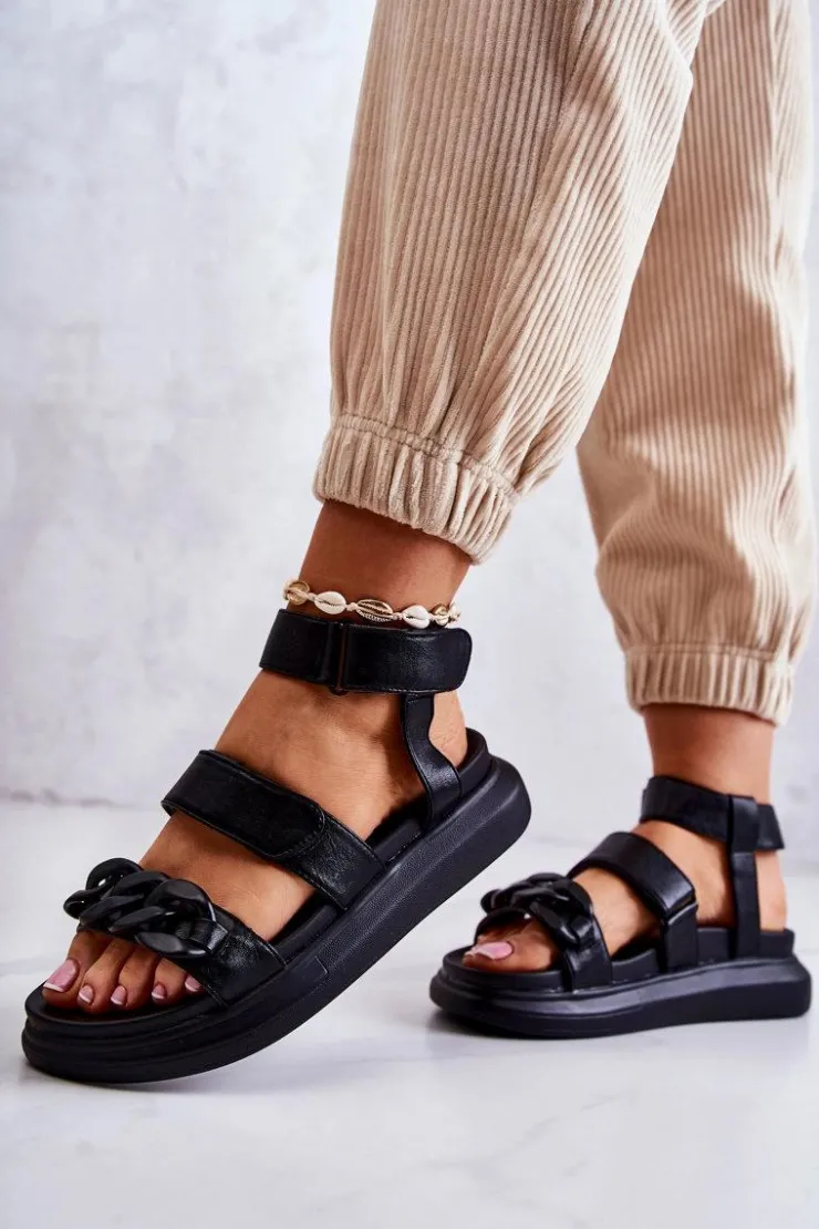 Śliczne sandały damskie od marki La.Fi. Wykonane z wysokiej jakości eko skóry. Paseczki świetnie stabilizują stopę podczas użytkowania. Na przodzie znajduje się ozdobny łańcuch wykonany z tworzywa sztucznego. Paseczki są zapinane na rzepy, więc możesz odpowiednio dopasować buty do tęgości nogi. Osadzone na masywnej platformie wykonanej z tworzywa sztucznego. Idealny model na lato – przewiewny, a zarazem wygodny. Przy wyborze rozmiaru prosimy sugerować się tabelą rozmiarów.