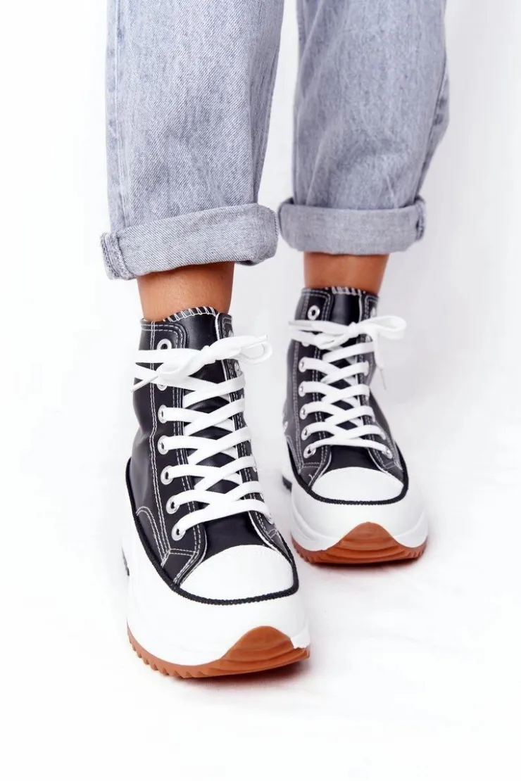 Damskie trampki na platformie wykonane z eko skóry. Kultowe już trampki pasują do wielu stylizacji. Buty dobrze dopasowują się do kształtu stopy, posiadają miękką materiałową wkładkę. Koniecznie sprawdź całą naszą kolekcję trampek! Przy wyborze rozmiaru prosimy sugerować się tabelą rozmiarów.