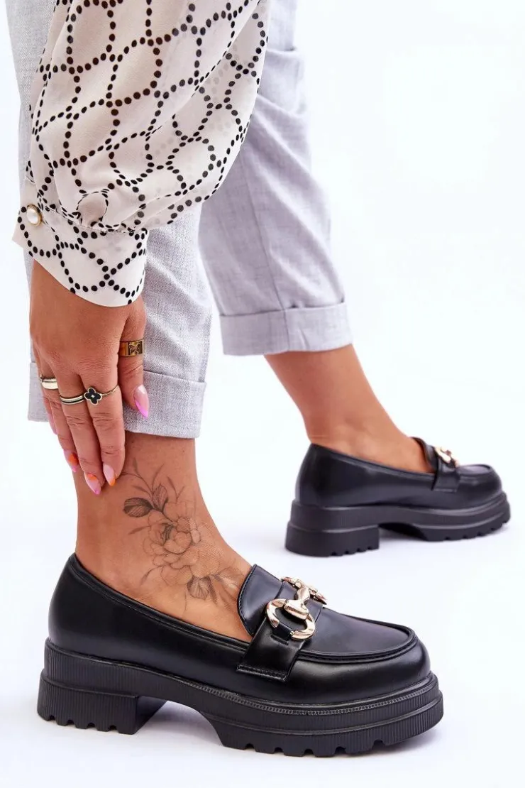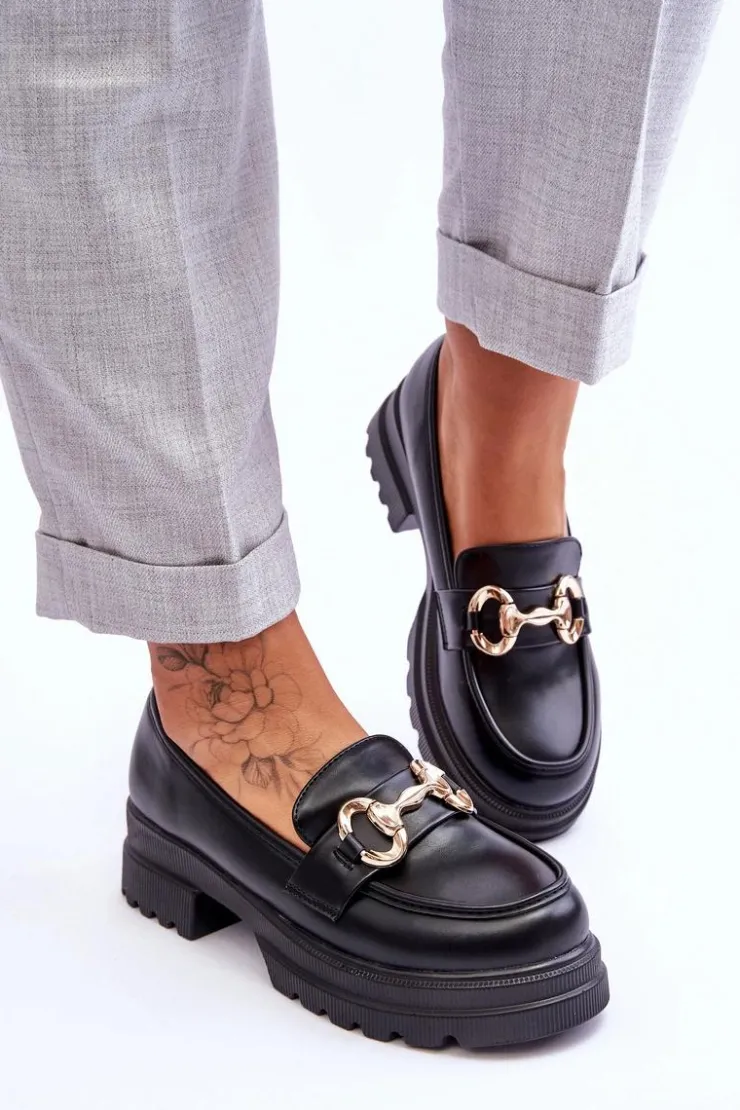 Klasyczne, damskie mokasyny, które świetnie sprawdzą się w wielu stylizacjach! Zostały osadzone na płaskim obcasie i platformie. Posiadają z przodu ozdobę z tworzywa sztucznego. Model ten został wykonany z eko skóry. Zapiętek w tych butach jest delikatnie usztywniany. Z pewnością wykorzystasz je w sezonie wiosenno-jesiennym! Przy wyborze rozmiaru prosimy sugerować się tabelą rozmiarów.
