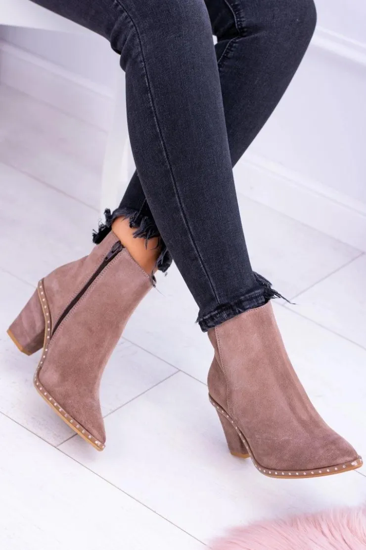 Damskie Boto Skórzane Zamszowe Beżowe Damskie Botki W Szpic Z Suwakiem Sonoma