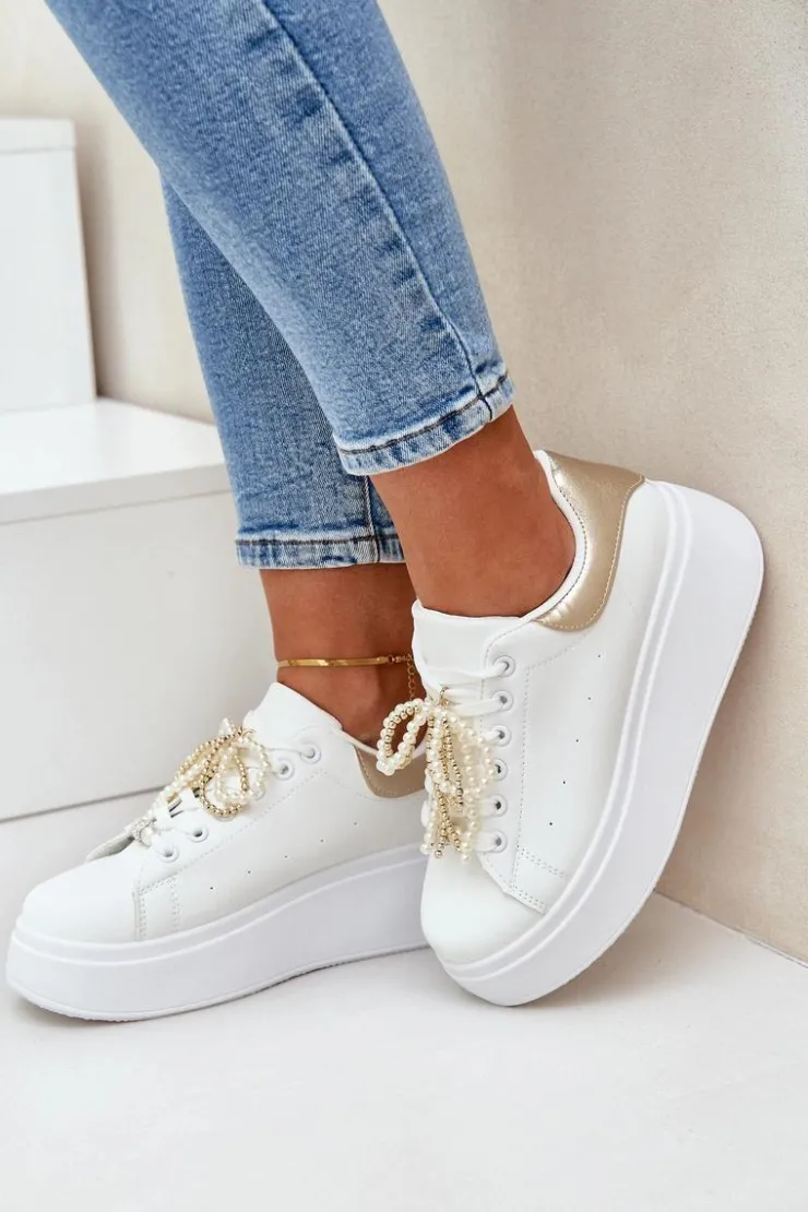 Damskie sneakersy wykonane z eko skóry. Osadzone na platformie. Ozdobione przypinkami na sznurowaniu, które wprowadzają modny akcent. Ten model jest doskonałym rozwiązaniem dla kobiet, które poszukują nie tylko stylu, ale również komfortu i wyjątkowości. Przy wyborze rozmiaru prosimy kierować się tabelą rozmiarów.