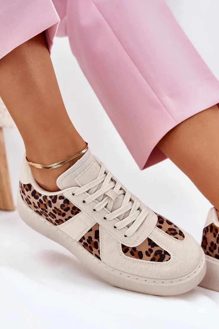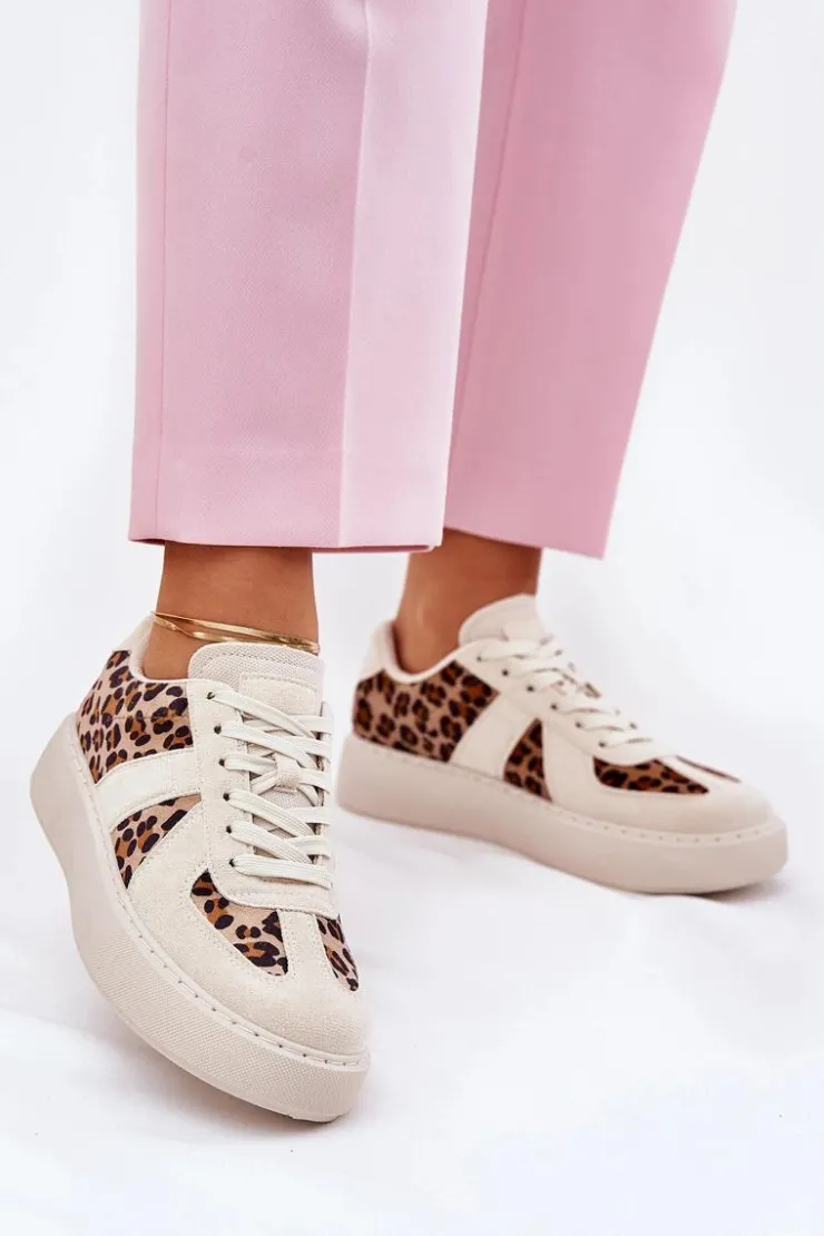 Damskie Boto Sneakersy Damskie Z Panterką Na Platformie Beżowe Nativira