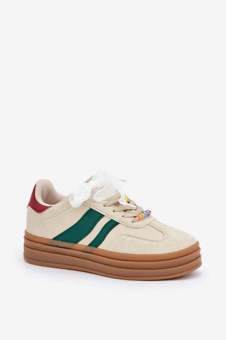 Modne sneakersy wykonane z eko zamszu to świetna propozycja dla miłośniczek wygody i stylowego wyglądu. Osadzone na platformie, nie tylko dodają kilku centymetrów wzrostu, ale także doskonale podkreślają nowoczesny charakter obuwia. Sznurowanie zostało urozmaicone uroczymi przypinkami, które nadają dziewczęcego uroku i oryginalności. Idealnie sprawdzą się zarówno w codziennych stylizacjach, jak i podczas spotkań z przyjaciółmi. Przy wyborze rozmiaru prosimy kierować tabelą rozmiarów.