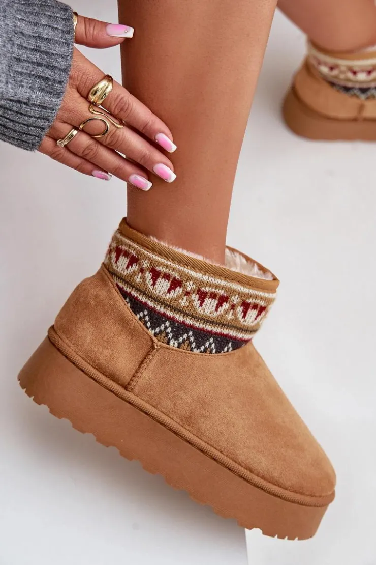 Damskie Boto Śniegowce Damskie Ze Wzorem Na Platformie Camel Avatharia