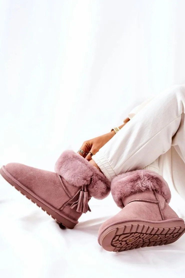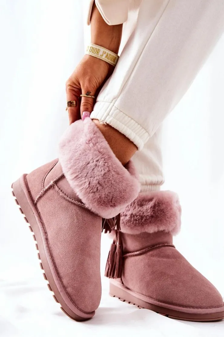 Damskie Boto Śniegowce Ocieplane Frędzle Różowe Sorella