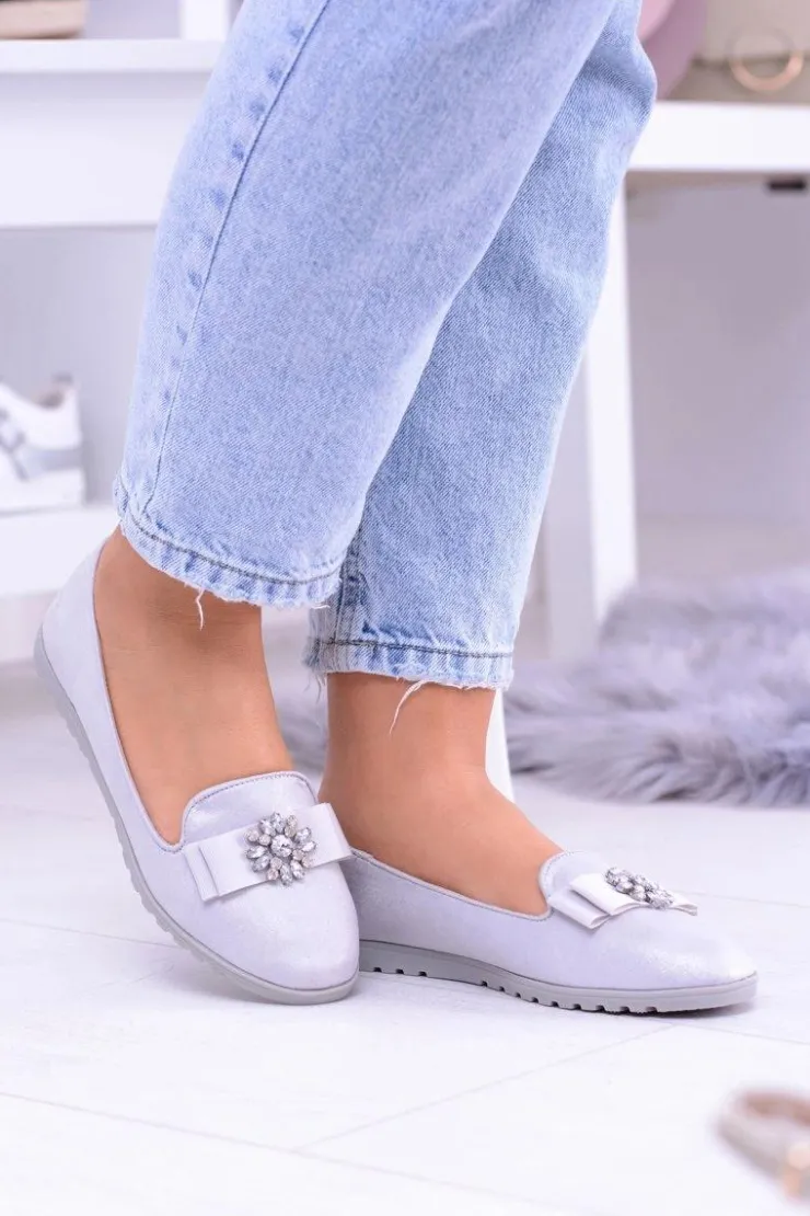 Damskie Boto Srebrne Damskie Baleriny Lordsy Cyrkonie Rumi