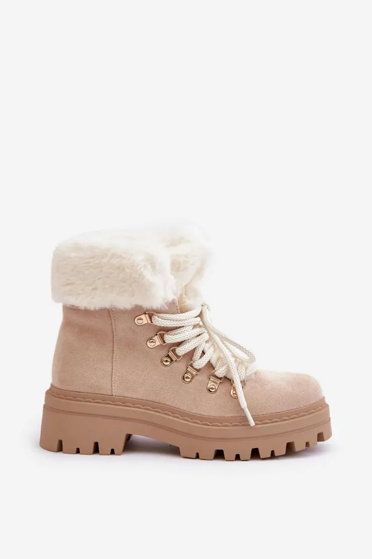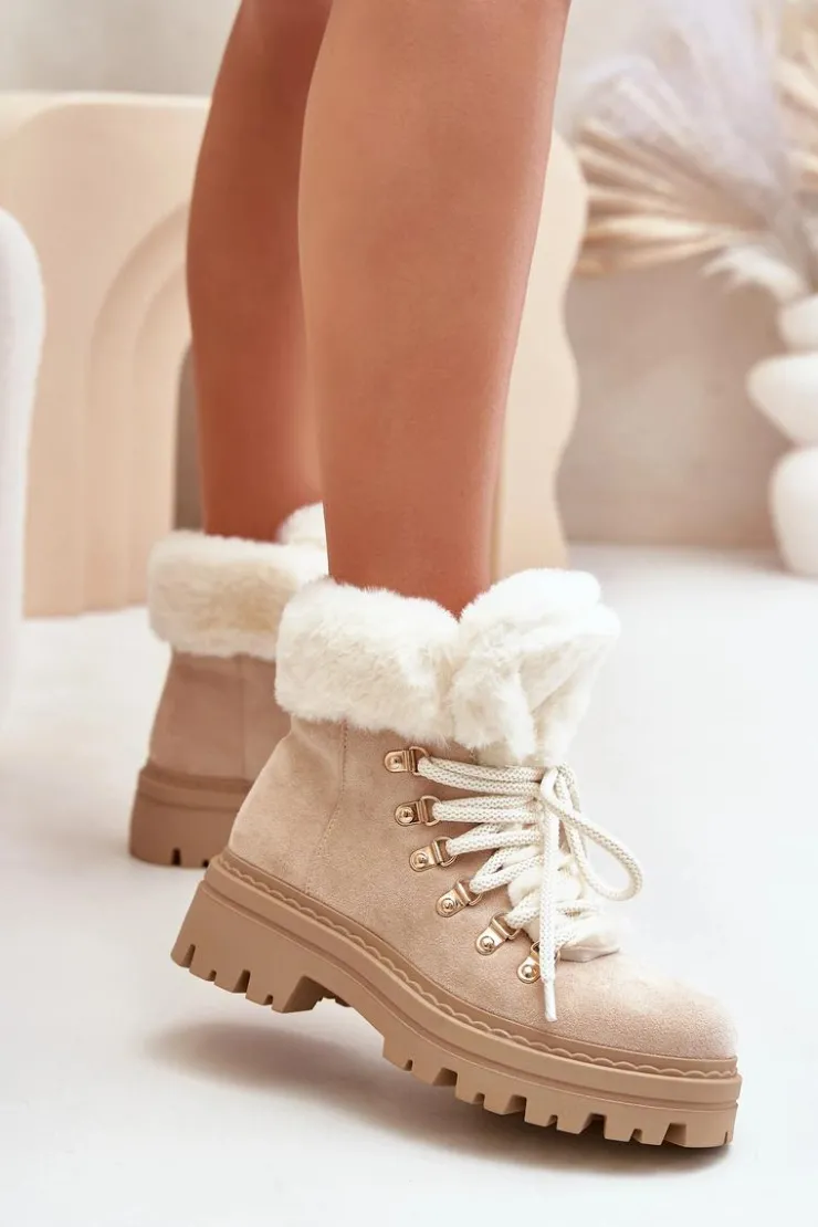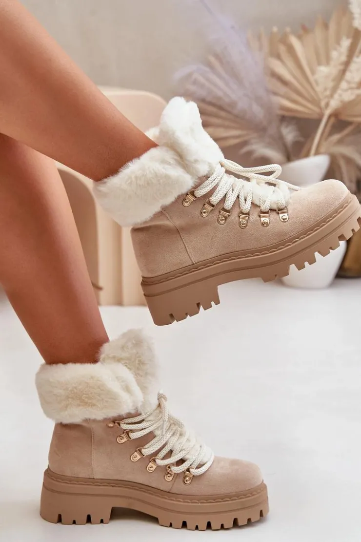 Damskie Boto Sznurowane Trapery Damskie Z Futerkiem Jasnobeżowe Vaminia