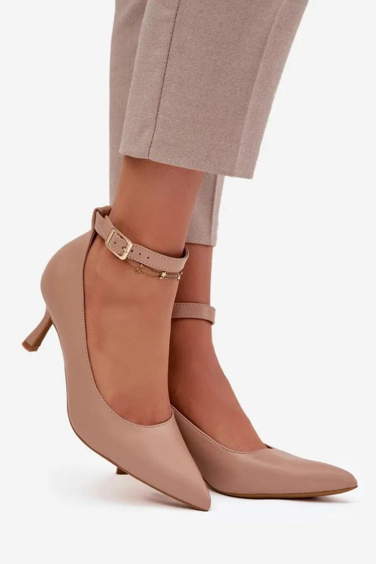 Szpilki – czółenka damskie wykonane z wysokiej jakości eko skóry to połączenie klasyki i kobiecego wdzięku. Model zachwyca eleganckim fasonem ze szpiczastym noskiem, który optycznie wysmukla nogi i dodaje sylwetce lekkości. Buty posiadają regulowany pasek ze sprzączką, który nie tylko stanowi ozdobny akcent, ale także zapewnia idealne dopasowanie do stopy i stabilność podczas chodzenia. Smukła szpilka pięknie podkreśla kobiecą sylwetkę, dodając jej elegancji i pewności siebie. Te czółenka doskonale sprawdzą się zarówno w eleganckich stylizacjach biurowych, jak i na specjalne okazje – do sukienek, spódnic czy klasycznych garniturów. Przy wyborze rozmiaru prosimy sugerować się tabelą rozmiarów.