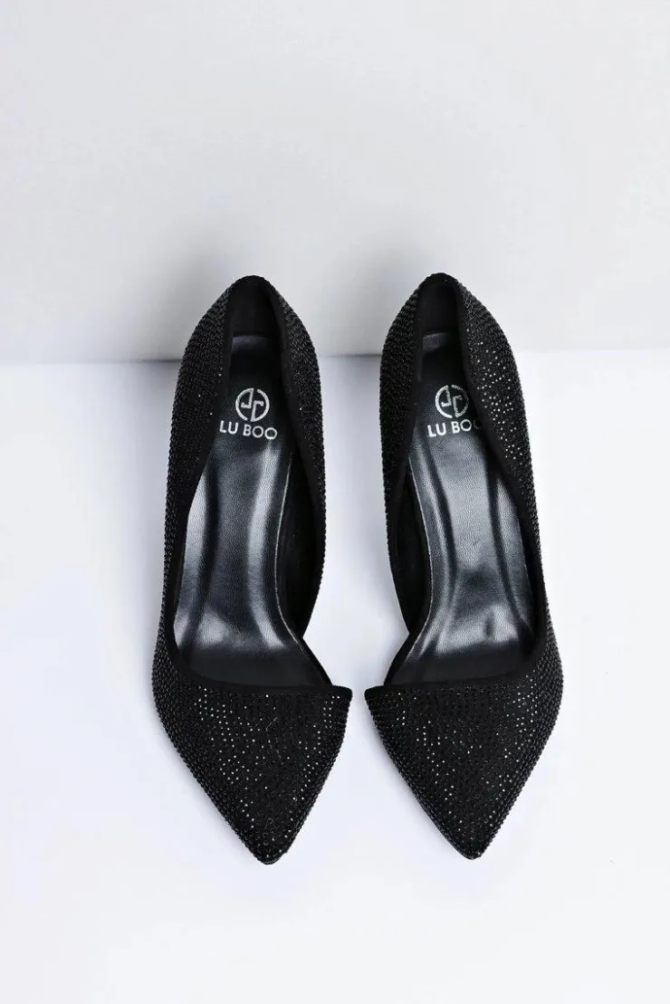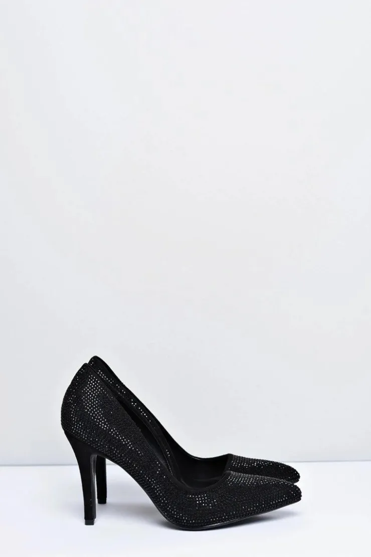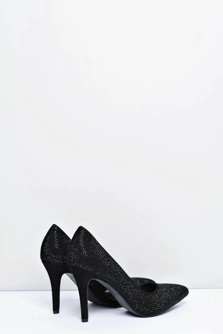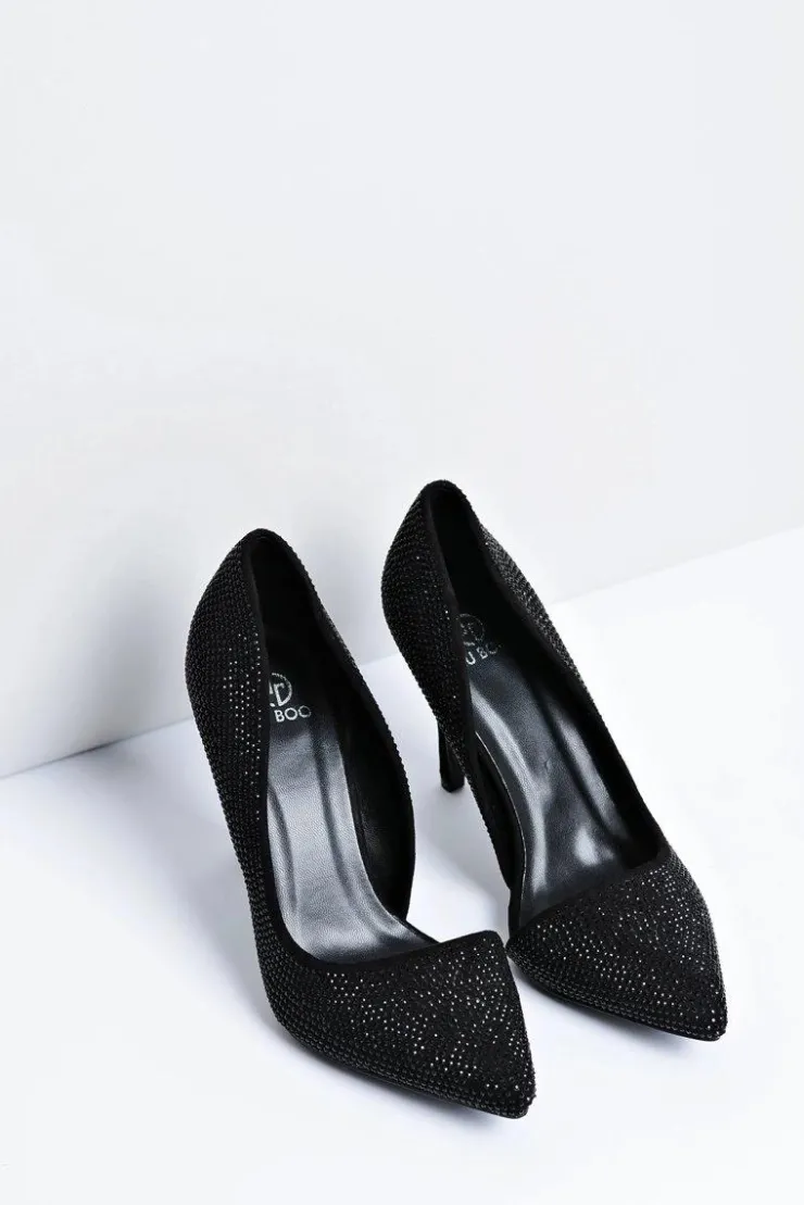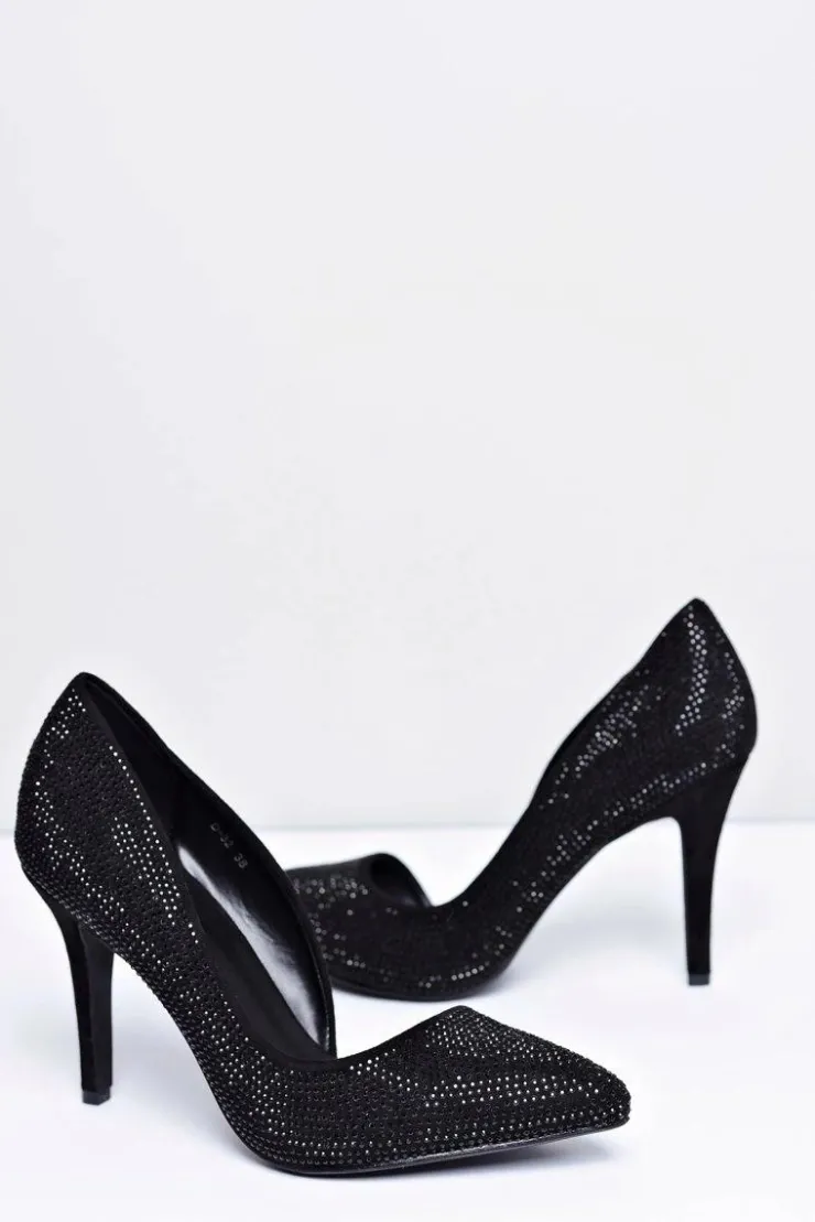 Damskie Boto Szpilki Damskie Czarne Zamszowe Cyrkonie Asymetryczne Santee