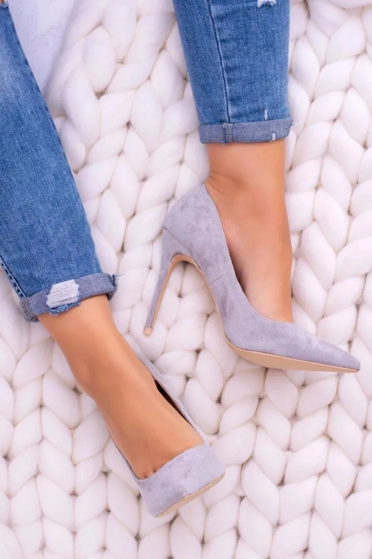 Damskie Boto Szpilki damskie Lu Boo Zamszowe Szare W Szpic Fione