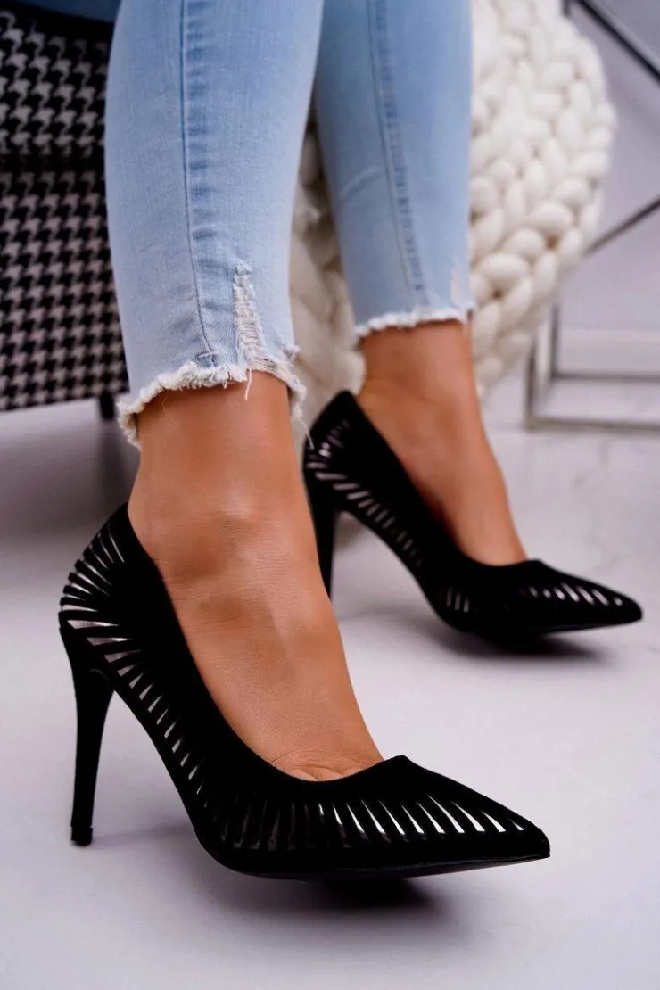 Damskie Boto Szpilki Damskie Zamszowe Czarne Fenne