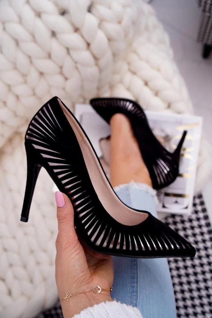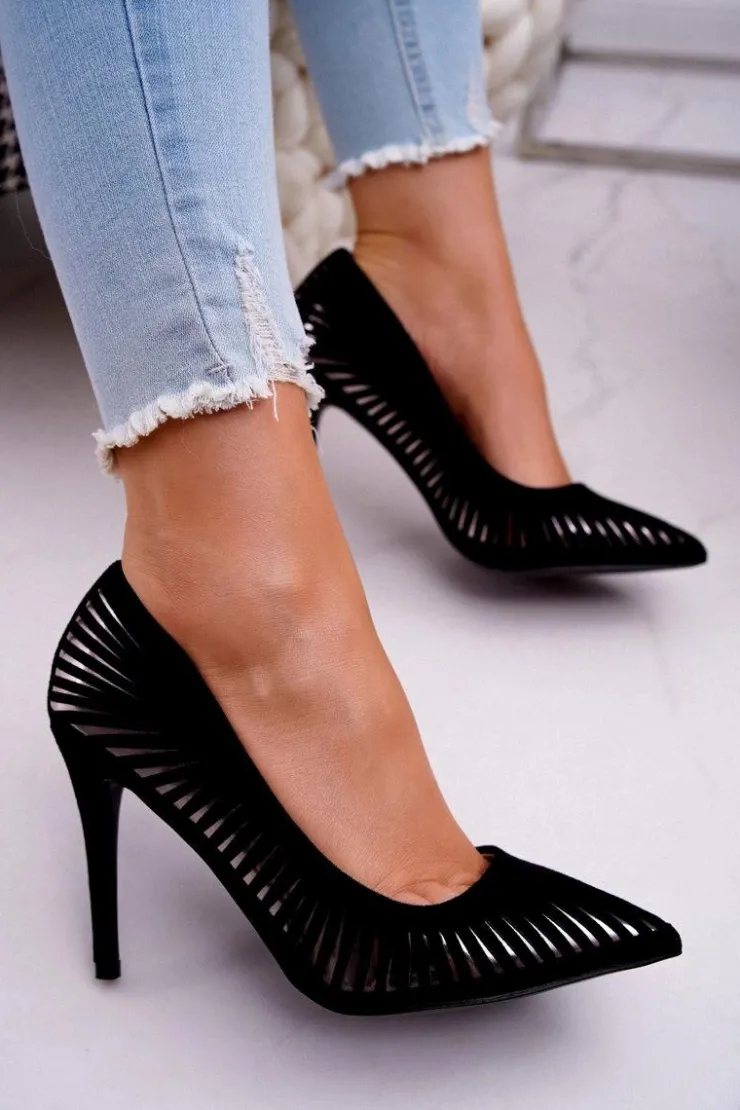 Zamszowe szpilki świetnie sprawdzą się w każdej sytuacji. O nasz komfort zadba delikatna wkładka, więc nie musisz się już martwić o bolące stopy. Wysoka szpilka oraz nosek w szpic wspaniale wyeksponują Twoją sylwetkę i podkreślą każdą stylizację. Przy wyborze rozmiaru prosimy kierować się tabelą rozmiarów