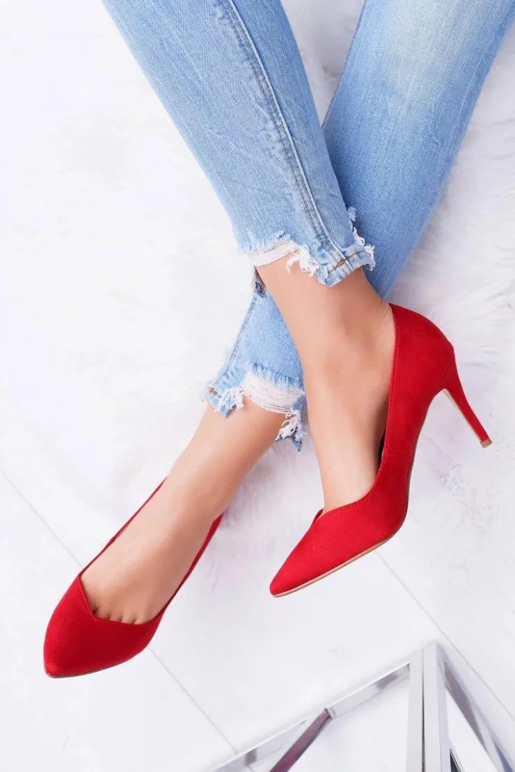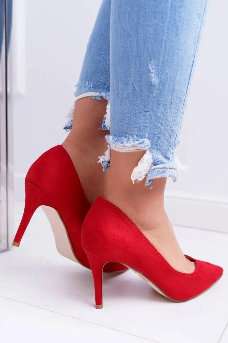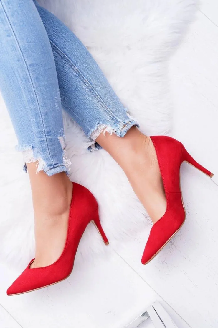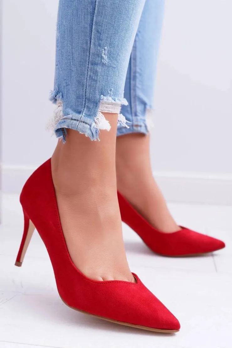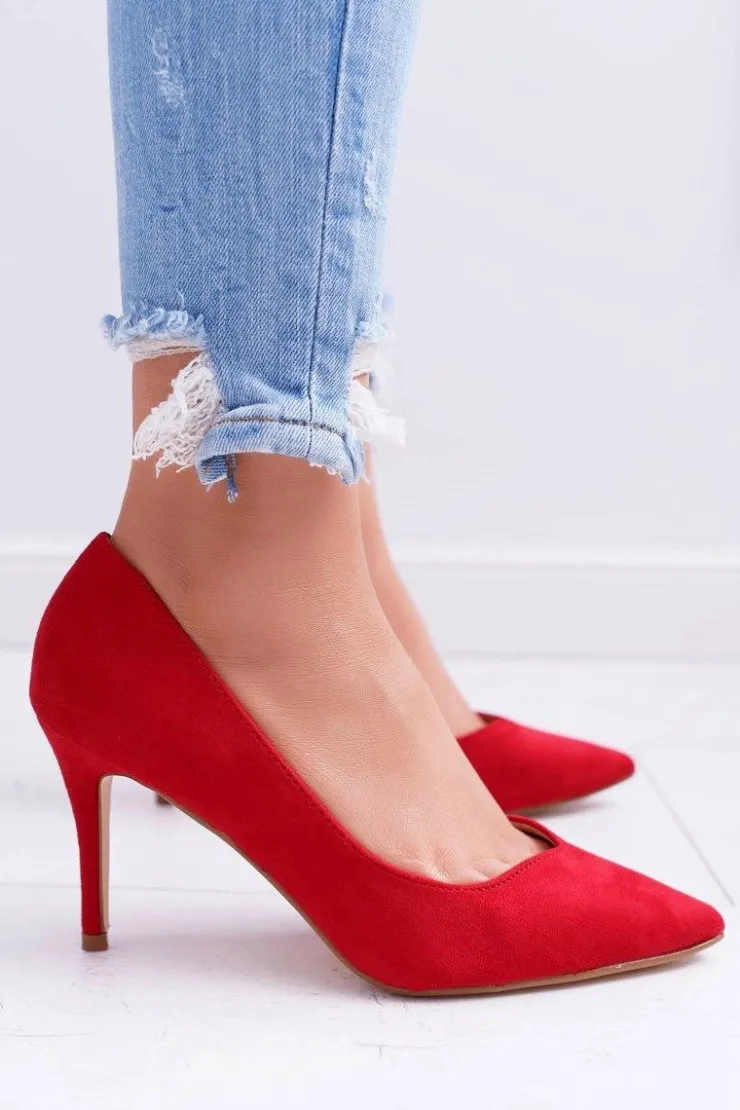 Damskie Boto Szpilki Damskie Zamszowe W Szpic Czerwone Cream