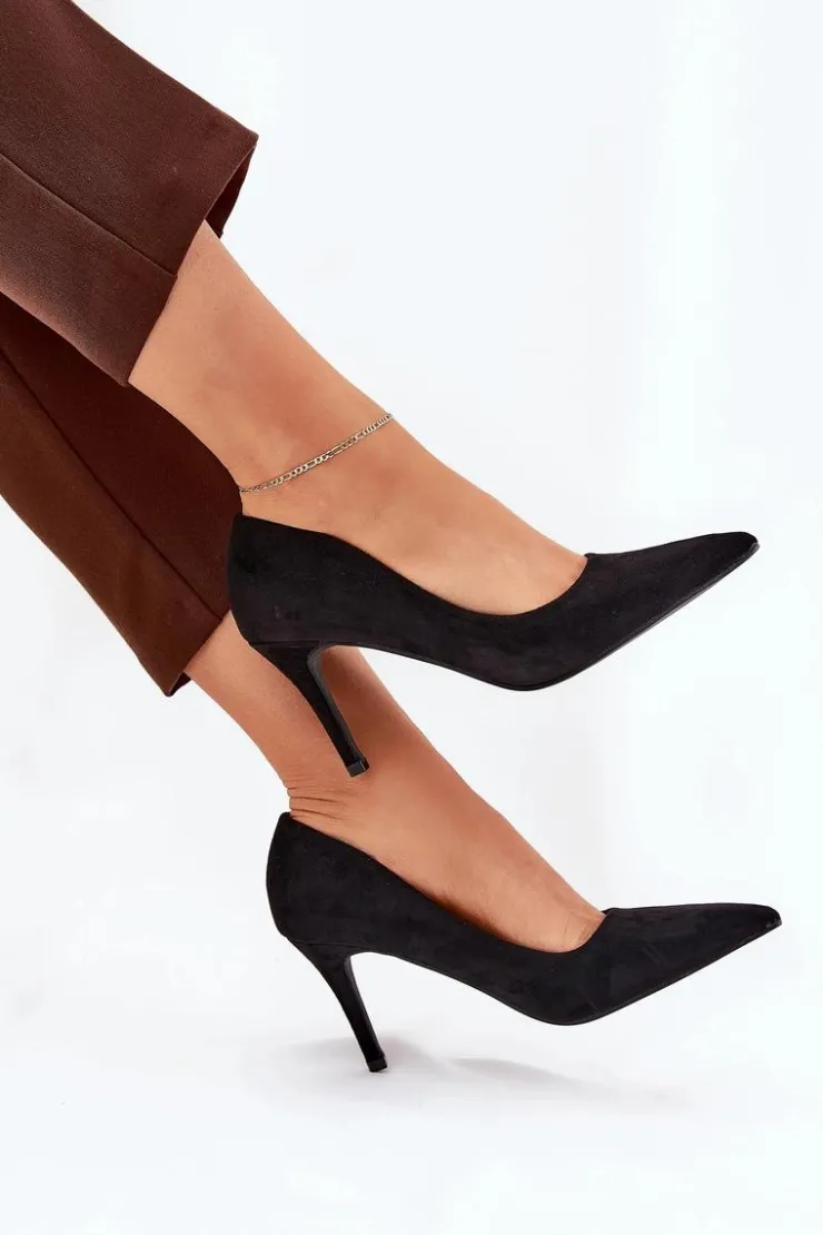 Eko zamszowe szpilki to klasyka, która wzbogaci każdą kreację o elegancję. Szpiczaste noski nadają im wyrafinowany wygląd, a ich gładka, jednolita cholewka czyni je ponadczasowymi i uniwersalnymi. Miękka wkładka zapewni komfort przez cały dzień. Te szpilki są idealnym wyborem na wieczorowe wyjścia, spotkania biznesowe oraz specjalne okazje, łącząc elegancję z wygodą. Przy wyborze rozmiaru prosimy sugerować się tabelą rozmiarów.