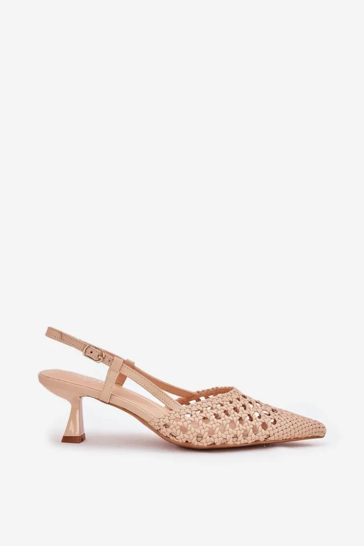 Szpilki damskie z odkrytą piętą, które zachwycają swoim wyglądem. Model zapinany na sprzączkę, co zapewnia idealne dopasowanie do stopy. Te szpilki będą doskonałym wyborem na wieczorne wyjścia i uroczystości, wprowadzając do każdej stylizacji stylowy akcent. Przy wyborze rozmiaru prosimy sugerować się tabelą rozmiarów.