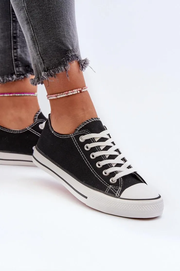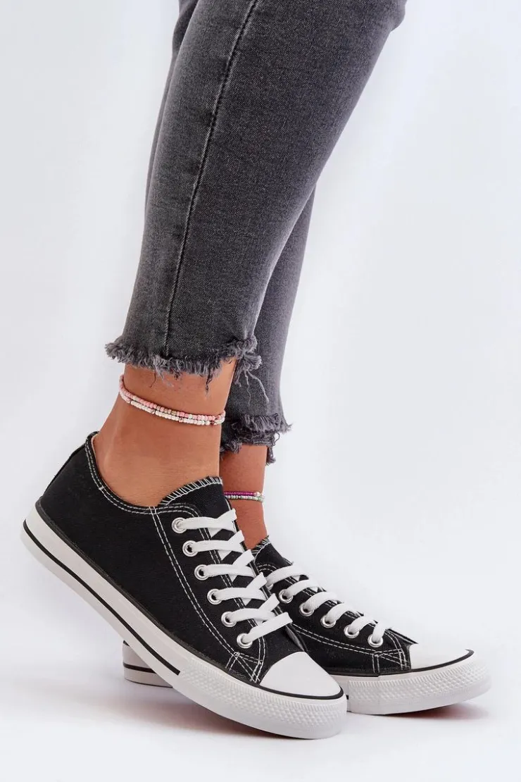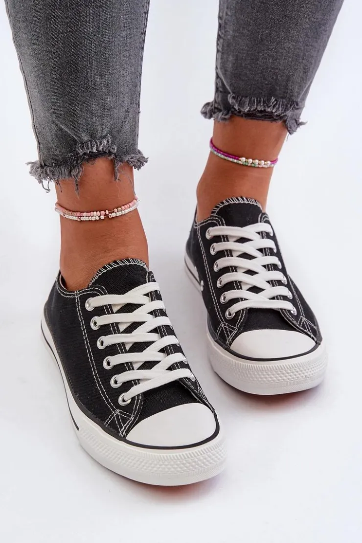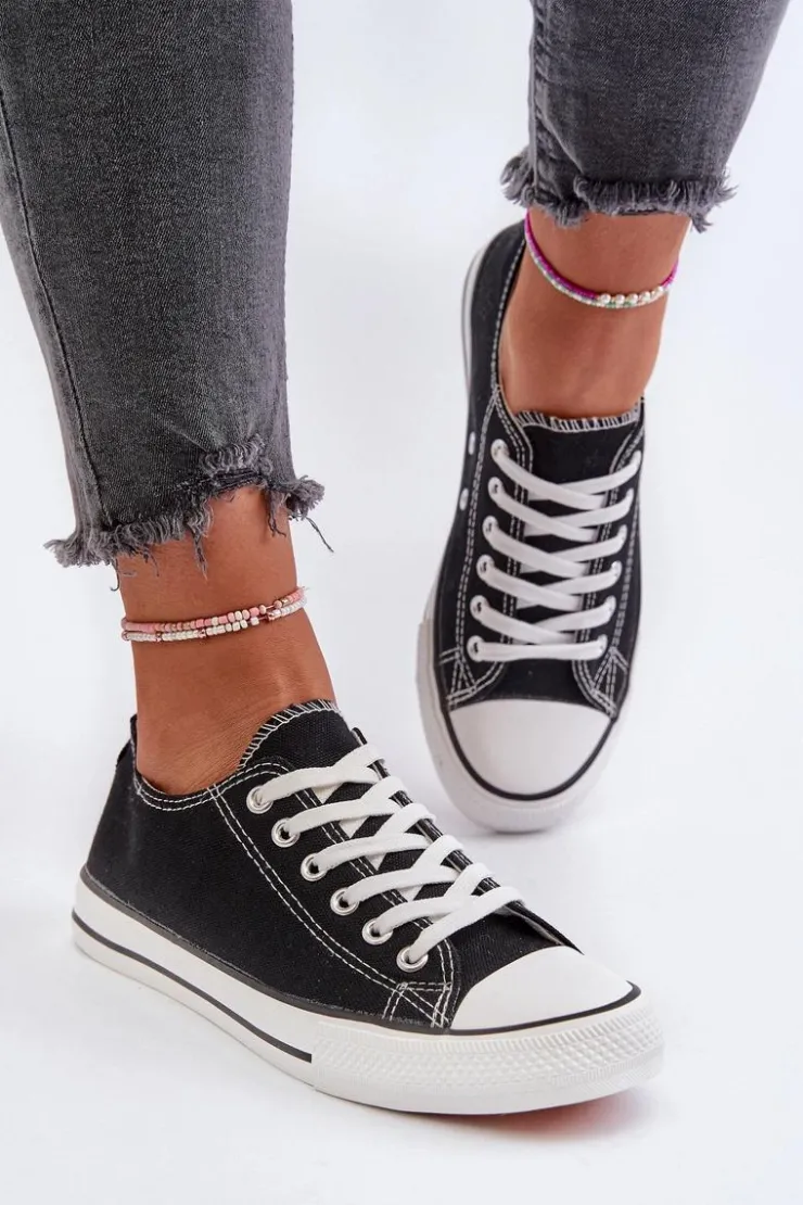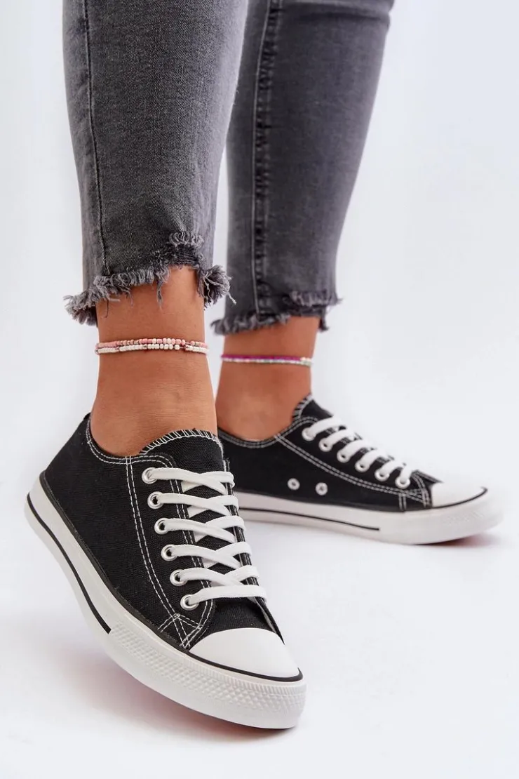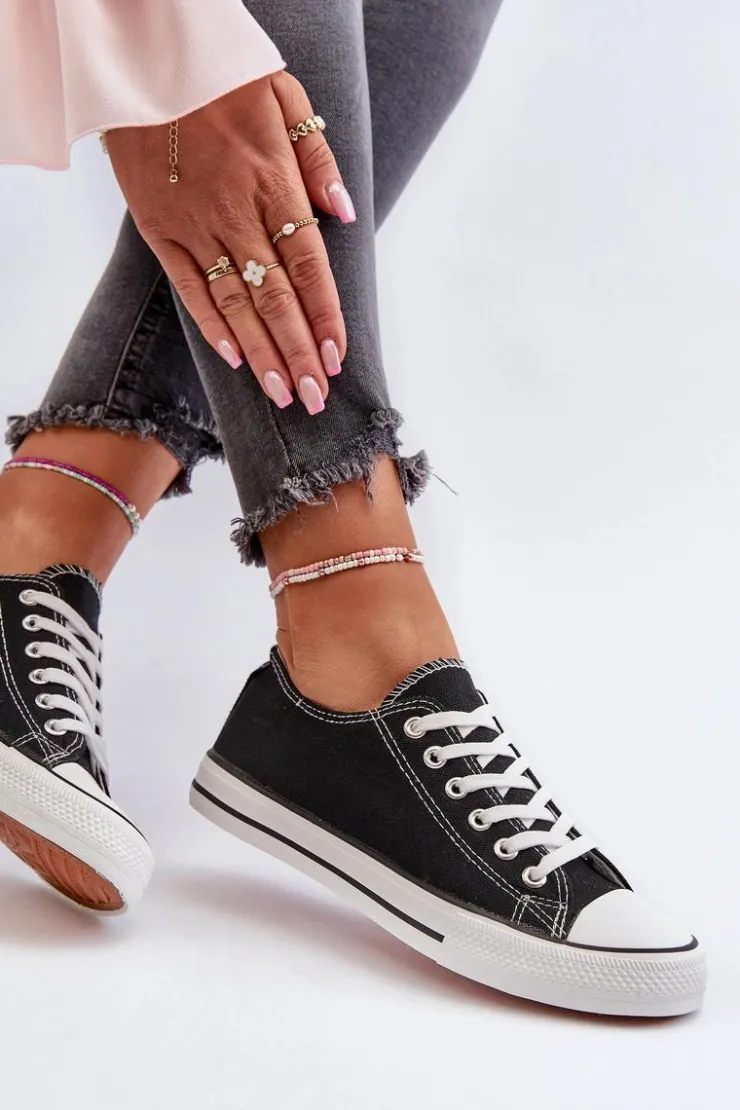 Damskie Boto Trampki Damskie Klasyczne Niskie Czarne Caelira
