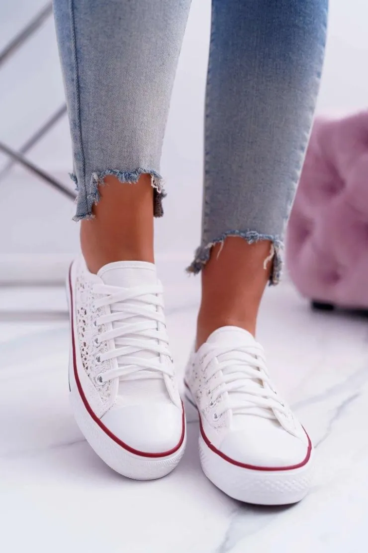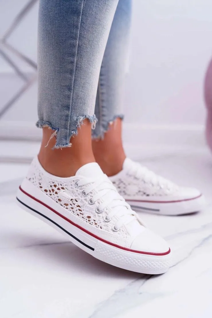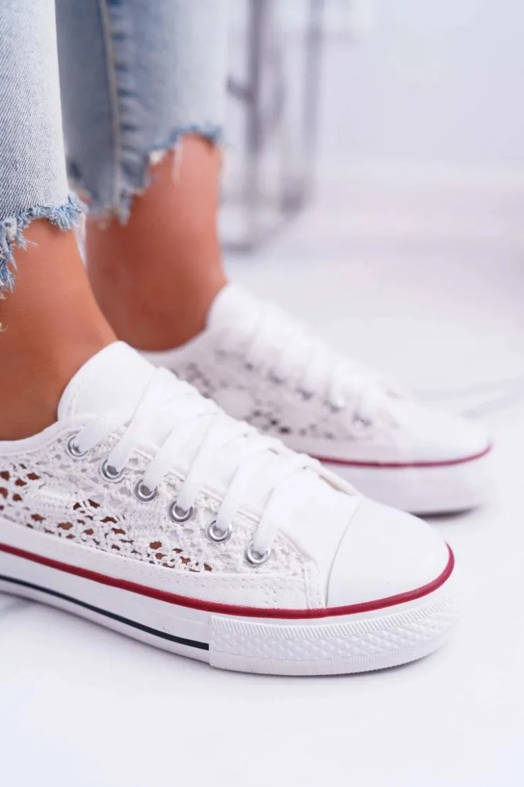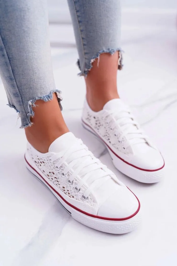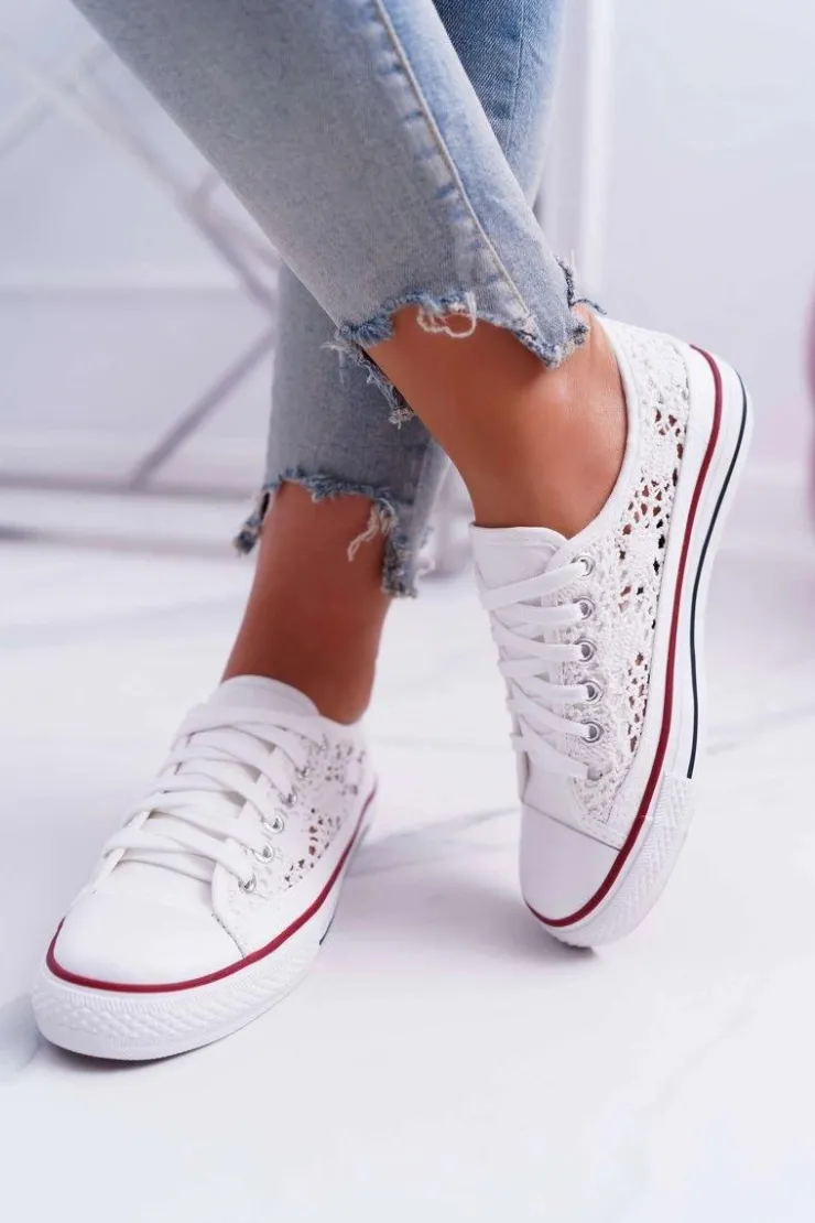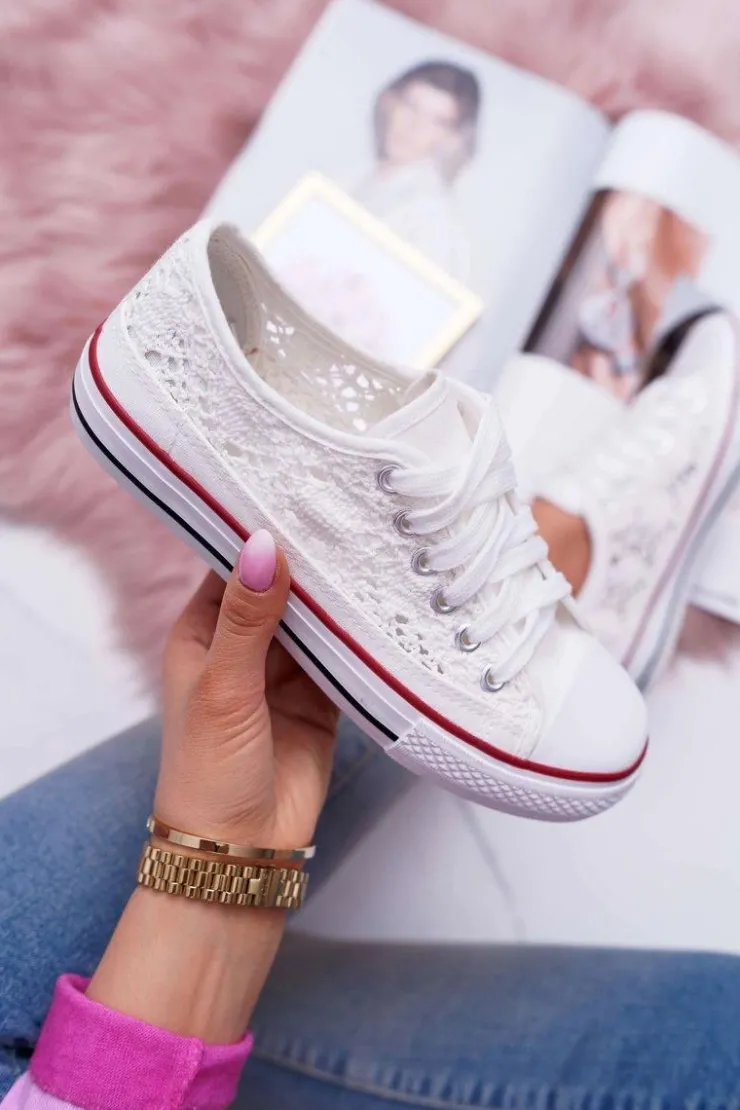 Damskie Boto Trampki Damskie Niskie Koronkowe Białe Veroli