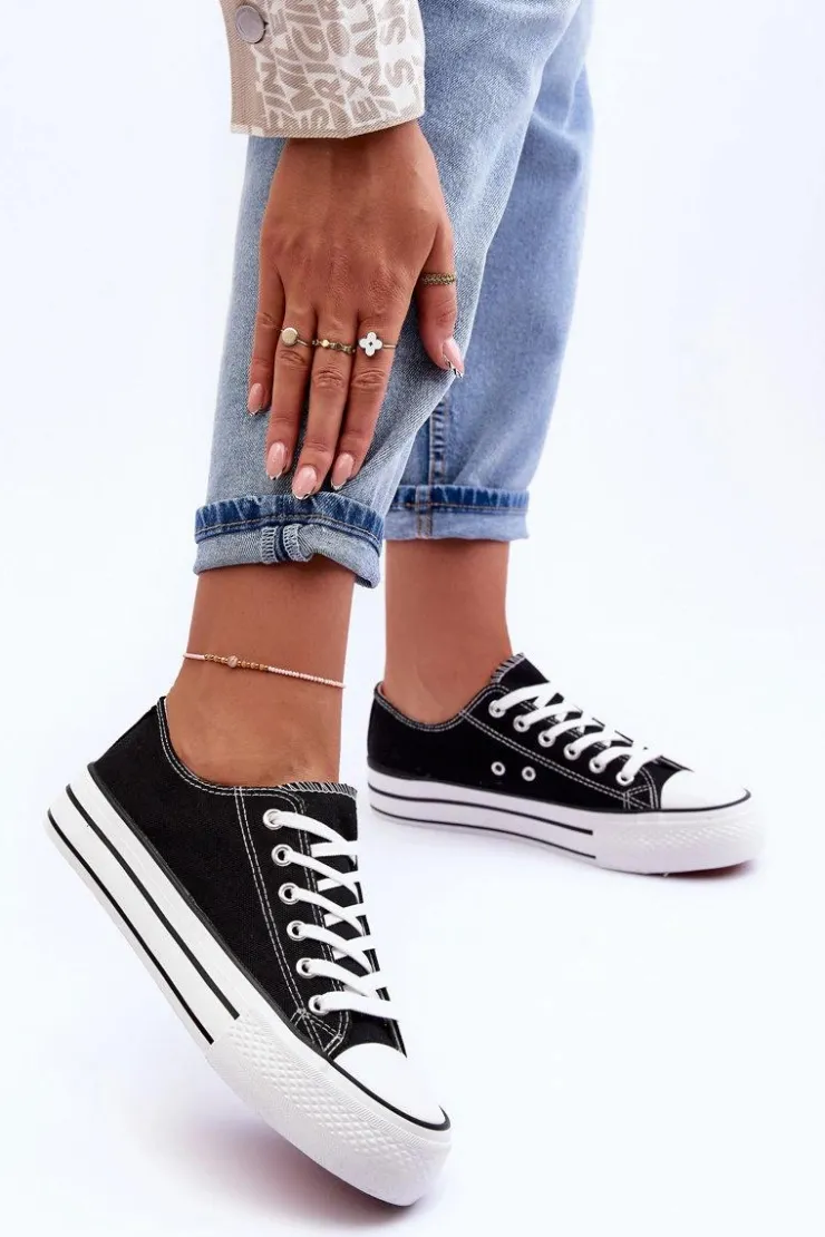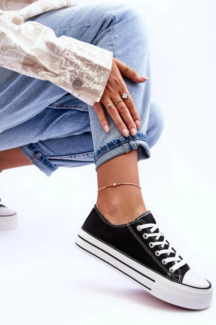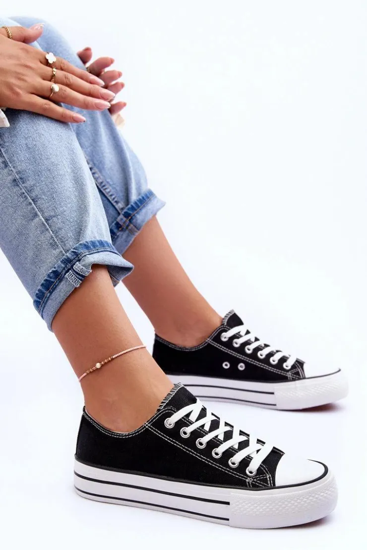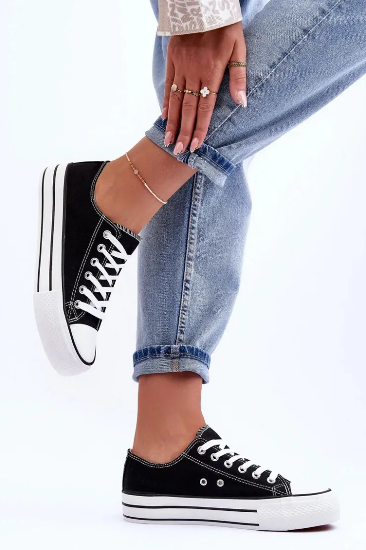 Damskie Boto Trampki Klasyczne Niskie Na Platformie Czarne Jazlyn