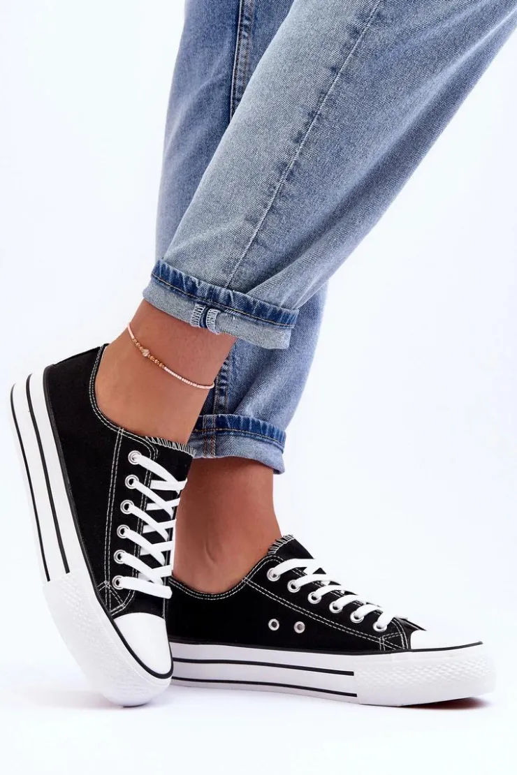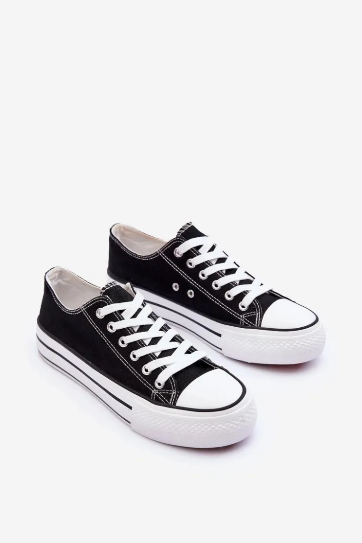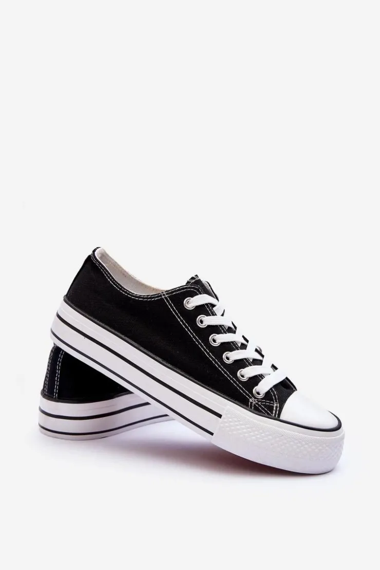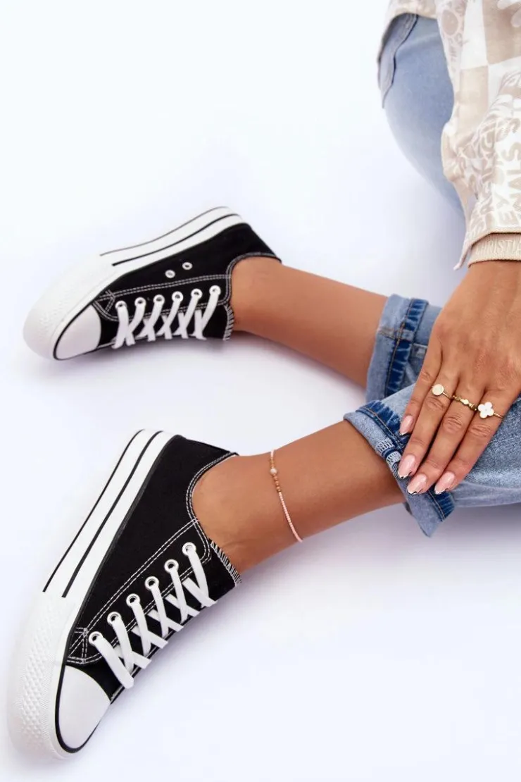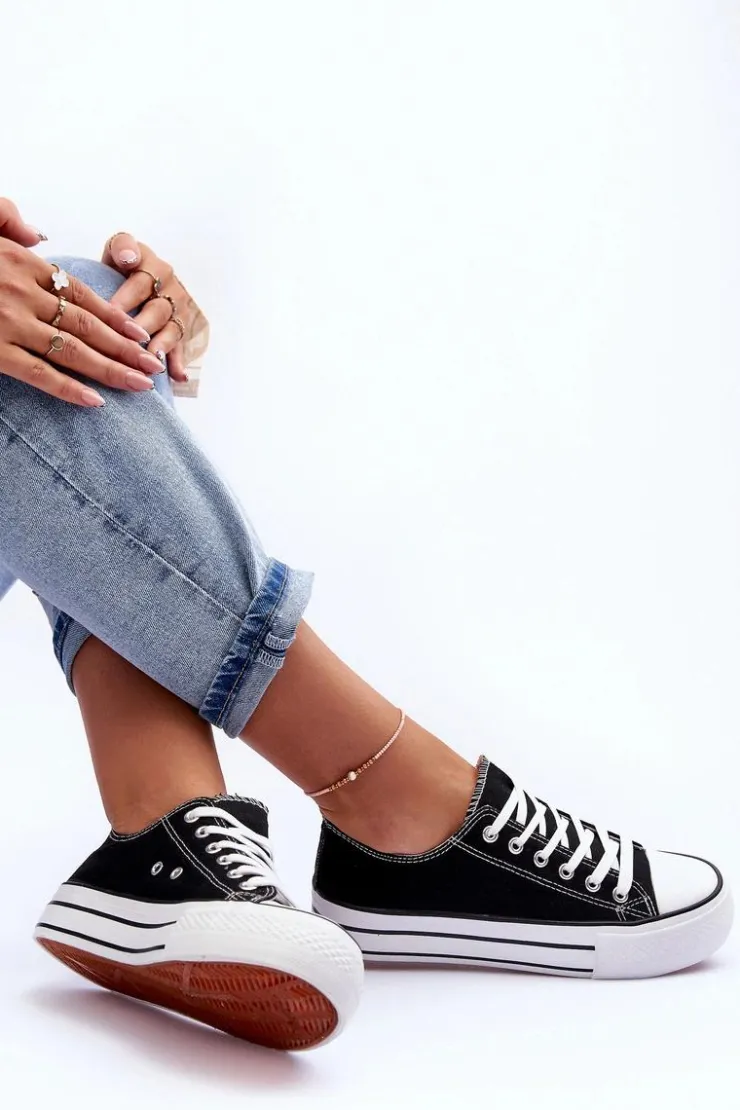 Damskie Boto Trampki Klasyczne Niskie Na Platformie Czarne Jazlyn