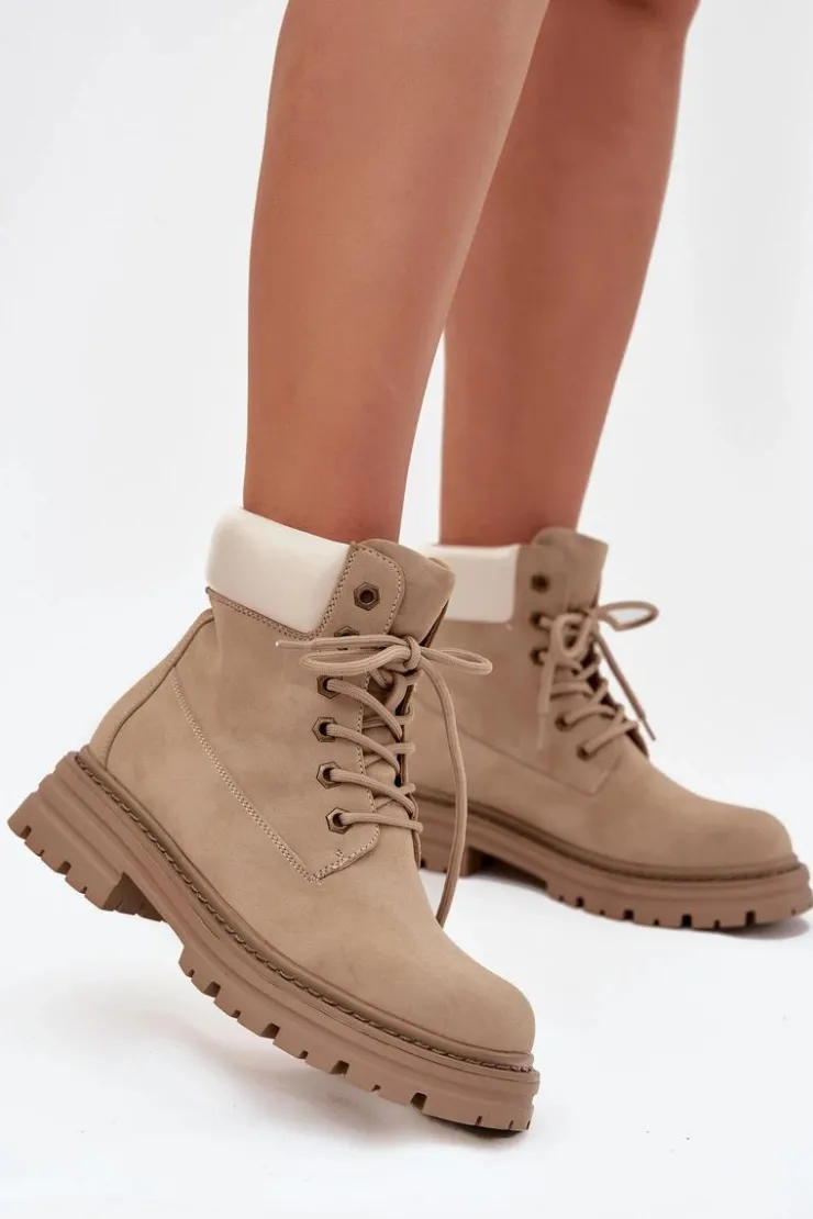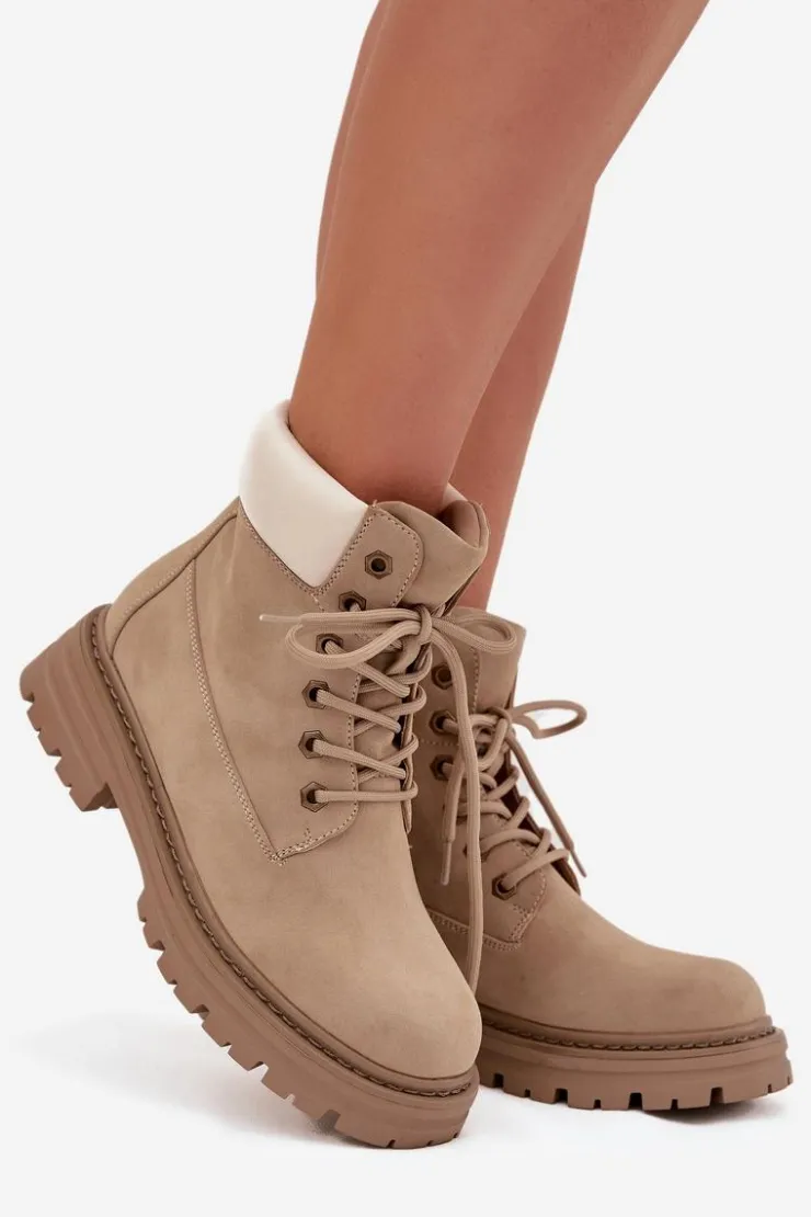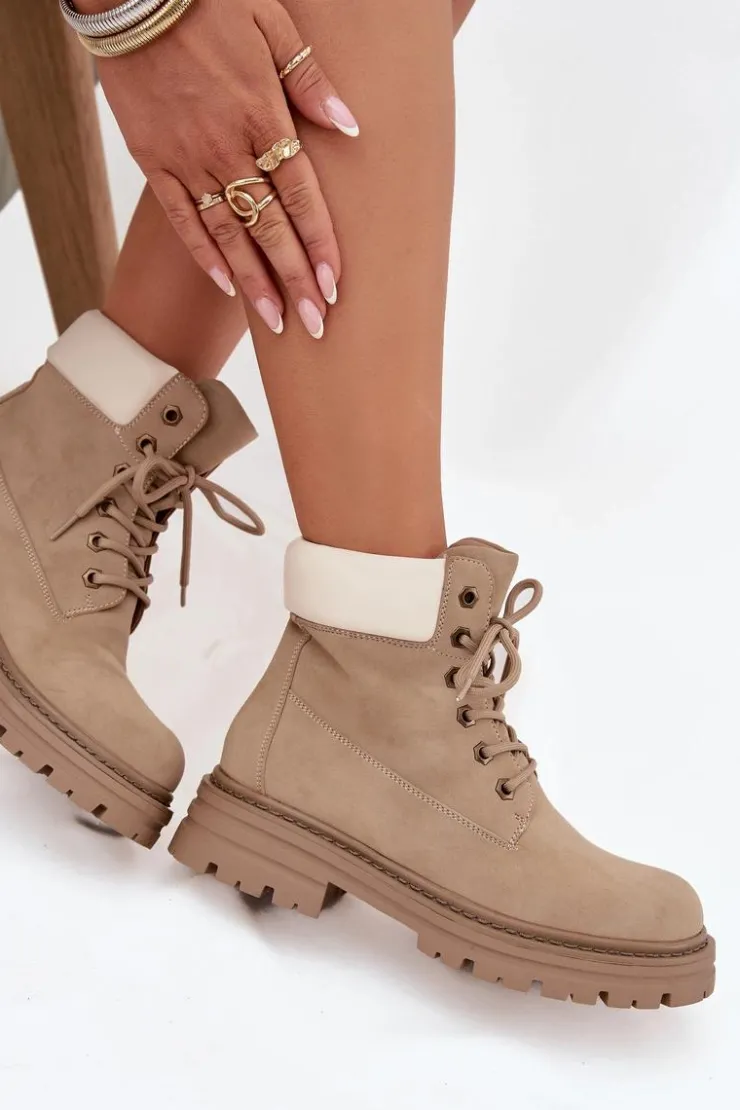 Damskie trapery z eko zamszu to doskonały wybór na chłodniejsze dni. Sznurowane, zapewniają idealne dopasowanie, a płaski obcas i platforma skutecznie odizolowują stopę od zimnego podłoża, gwarantując komfort i ciepło. Te trapery będą świetnym dopełnieniem codziennych, zimowych stylizacji. Przy wyborze rozmiaru prosimy sugerować się tabelą rozmiarów.