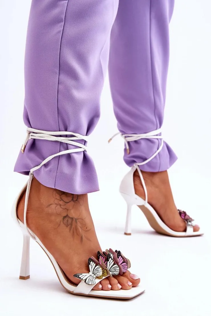 Niesamowite sandałki damskie wykonane z eko skóry posiadają na przodzie urocze motylki. Model ten jest wiązany na wysokości łydki. Dodatkowo zapiętek w tych butach jest usztywniany. Tym modelem urozmaicisz wiele stylizacji! Sandałki zostały osadzone na szpilce. Koniecznie powinny być Twoje! Przy wyborze rozmiaru prosimy sugerować się tabelą rozmiarów.