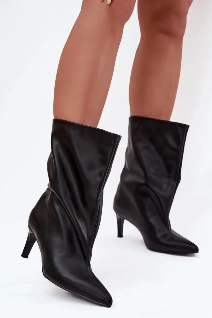 Te wsuwane botki to prawdziwy strzał w dziesiątkę, jeśli szukasz czegoś stylowego i kobiecego! Smukła szpilka dodaje lekkości i subtelnie wydłuża nogi, a luźna cholewka wprowadza odrobinę nonszalancji. Szpiczaste noski dopełniają całości, nadając butom eleganckiego, modnego charakteru – idealne do zarówno casualowych, jak i bardziej wyjściowych looków. Przy wyborze rozmiaru prosimy sugerować się tabelą rozmiarów.