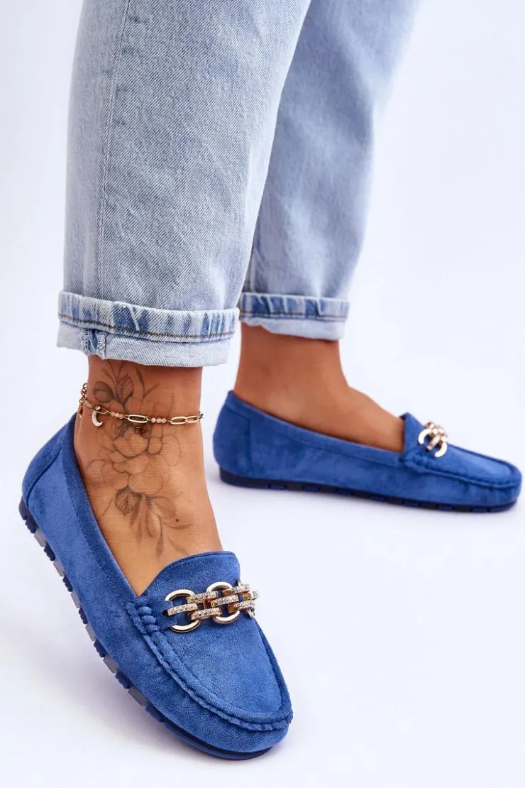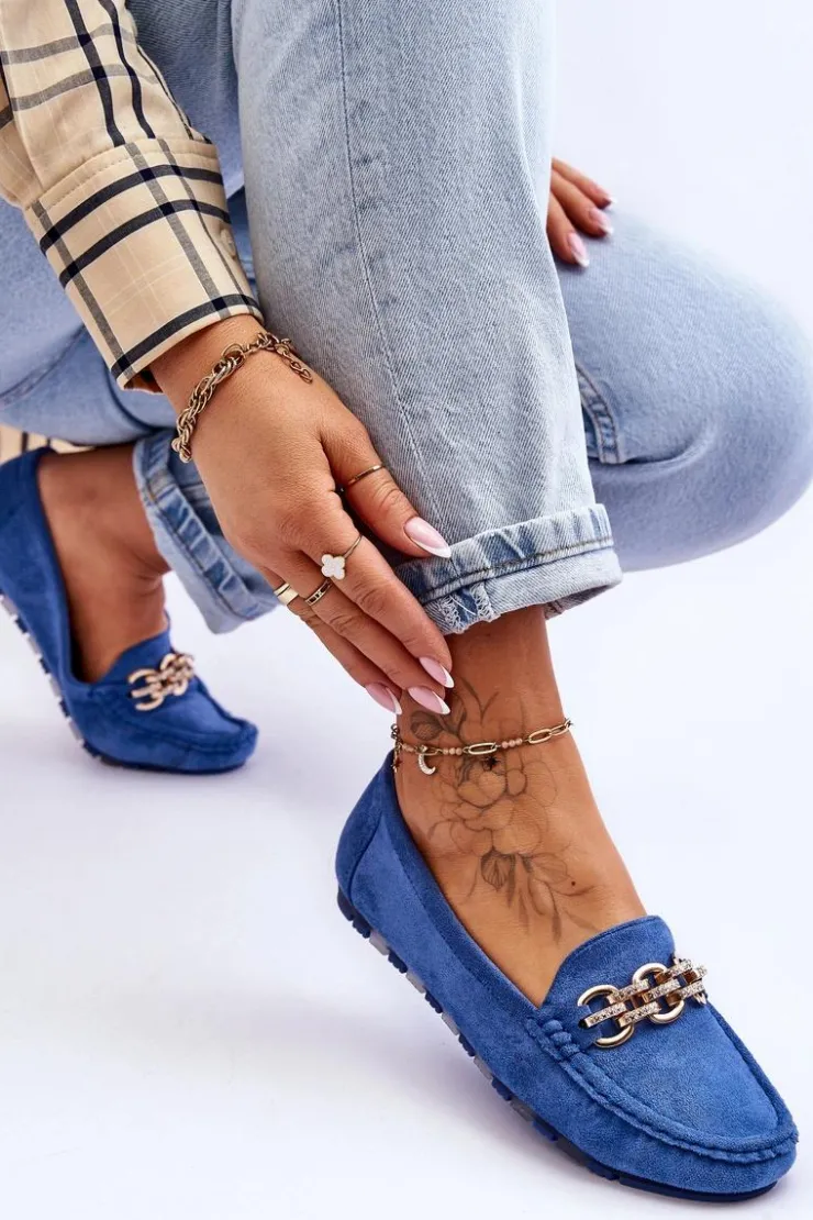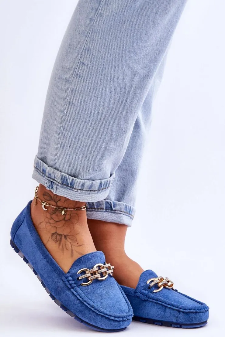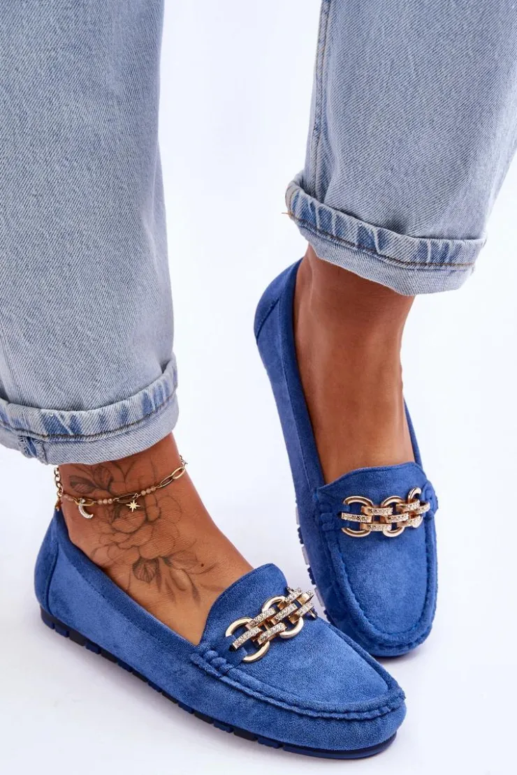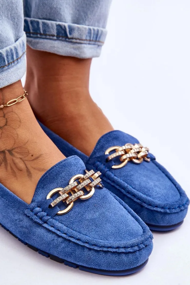 Mokasyny damskie zostały wykonane z eko zamszu. Posiadają na przodzie ozdobny łańcuszek z dżetami. Mokasyny zostały osadzone na platformie z gumową, antypoślizgową podeszwą. Miękka wkładka z eko skóry zapewni komfortowe użytkowanie. Koniecznie powinnaś je mieć! Przy wyborze rozmiaru prosimy sugerować się tabelą rozmiarów.
