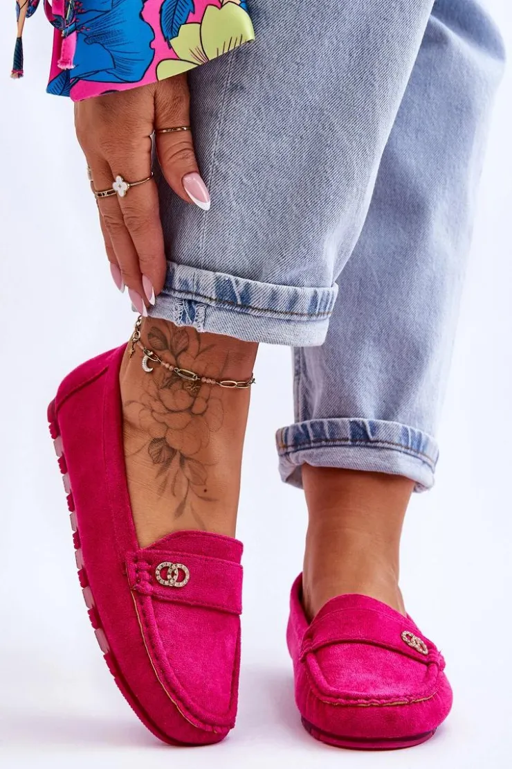 Klasyczne, wsuwane mokasyny zostały wykonane z eko zamszu. Na pasku z przodu znajduje się ozdoba z dżetami. Mokasyny zostały osadzone na platformie z gumową, antypoślizgową podeszwą. Miękka wkładka z eko skóry zapewni Ci wygodę podczas użytkowania. Świetny model do wielu wiosenno-jesiennych stylizacji! Przy wyborze rozmiaru prosimy sugerować się tabelą rozmiarów.