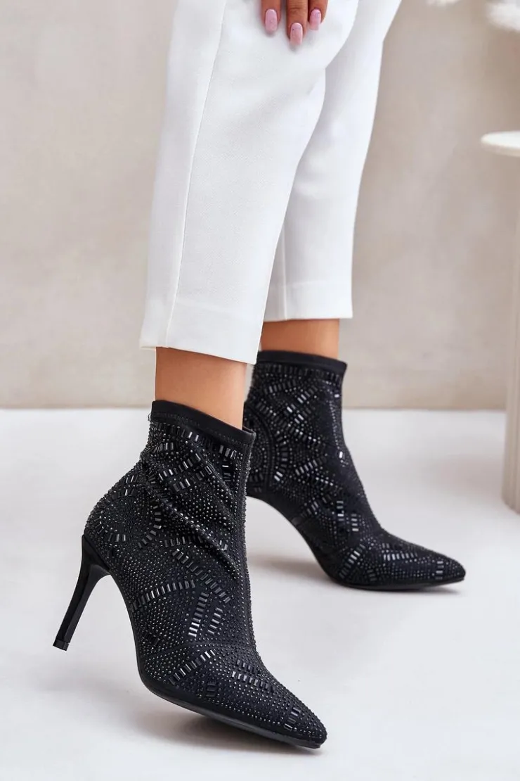 Śliczne botki damskie od marki S.Barski. Głównym atutem tego modelu jest liczne zdobienie na cholewce. Obcas w postaci szpilki. Noski w szpic optycznie wysmuklą nogi. Botki te z pewnością nadają blasku każdej stylizacji. Idealnie sprawdzą się na wieczorne wyjścia! Przy wyborze rozmiaru prosimy sugerować się tabelą rozmiarów.
