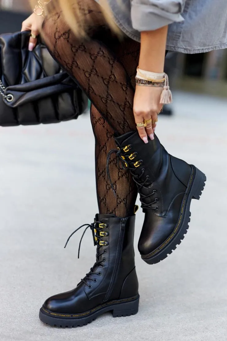 Klasyczne wysokie workery posiadają wiązanie oraz suwak. Przy podeszwie znajduje się mały napis. Botki są ocieplane kocem obuwniczym. Piękne botki nadadzą charakteru Twojej stylizacji! Płaski obcas zapewnia stabilność. Sprawdź całą naszą kolekcję workerów! Przy wyborze rozmiaru prosimy sugerować się tabelą rozmiarów.