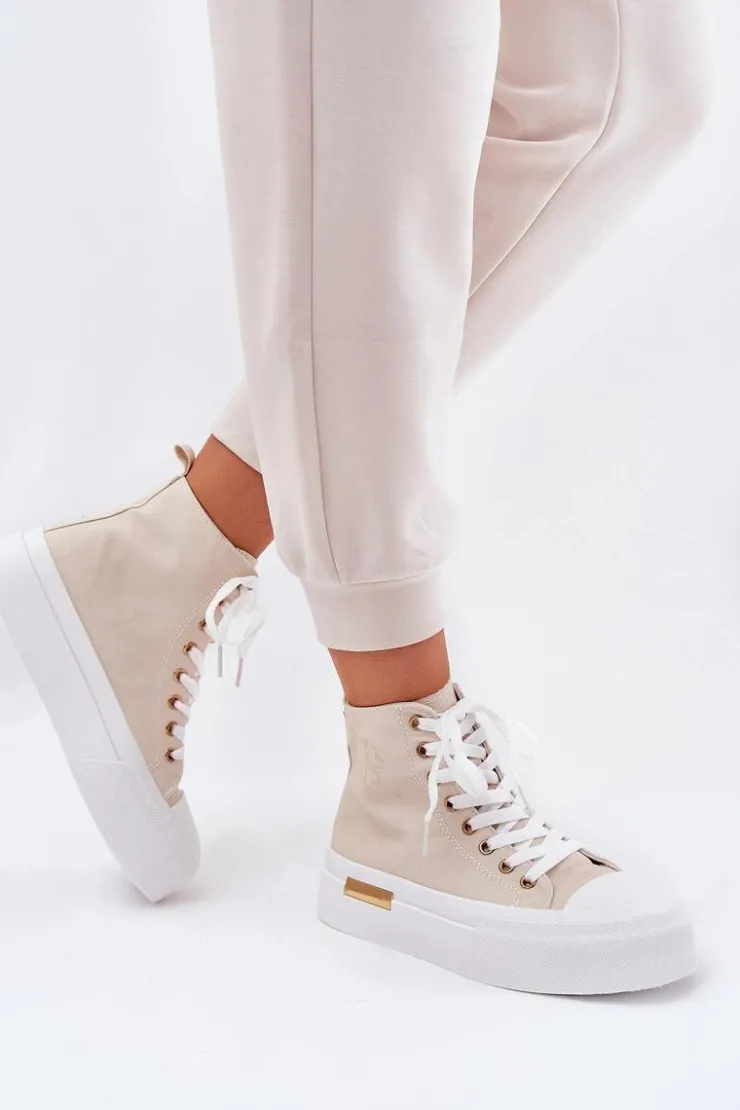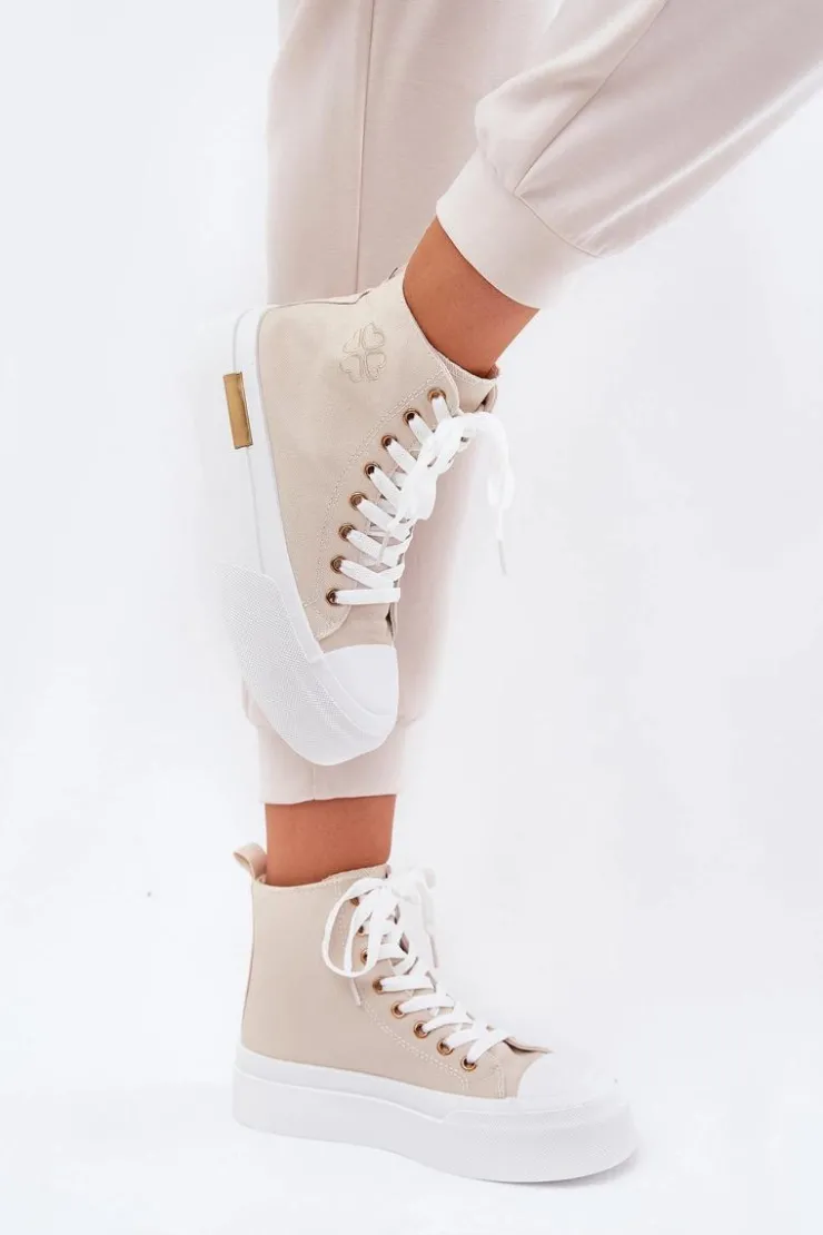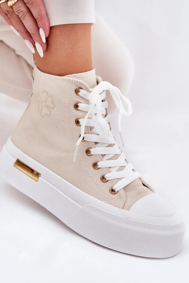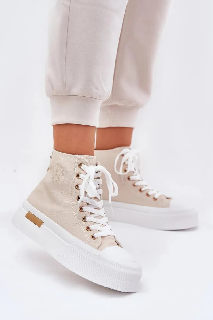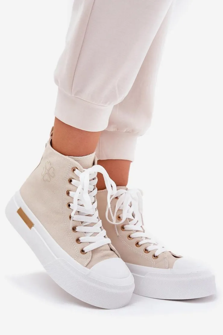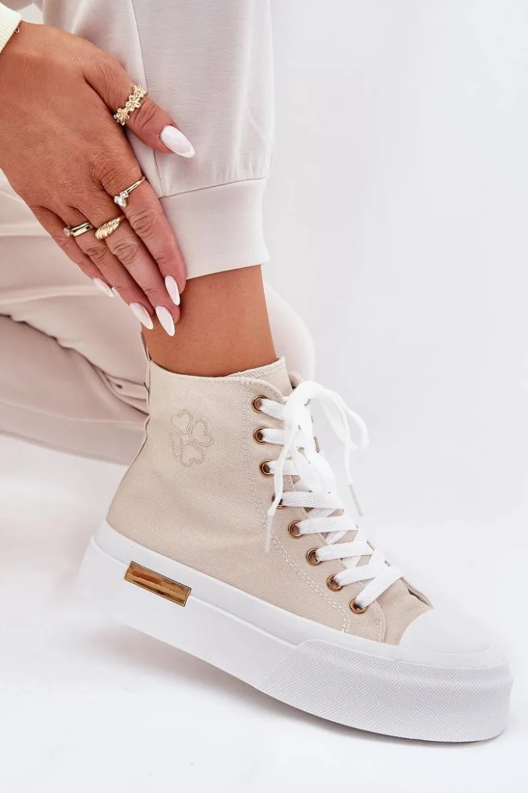 Damskie Boto Wysokie Trampki Damskie Na Platformie Beżowe Laviriona