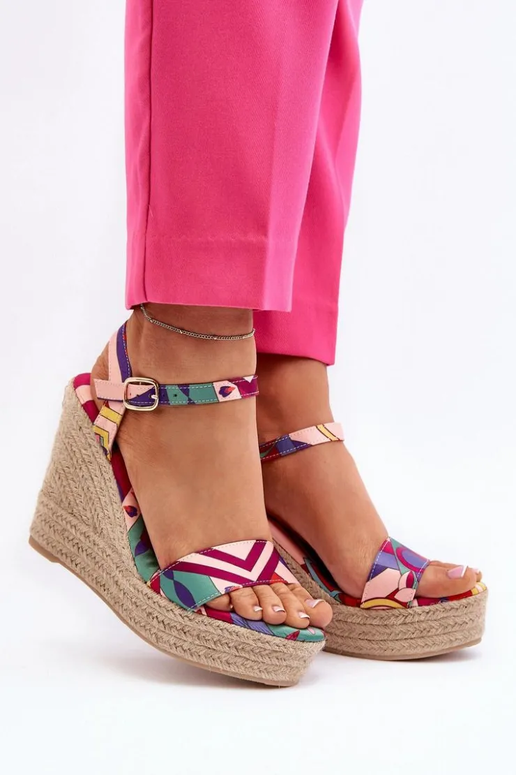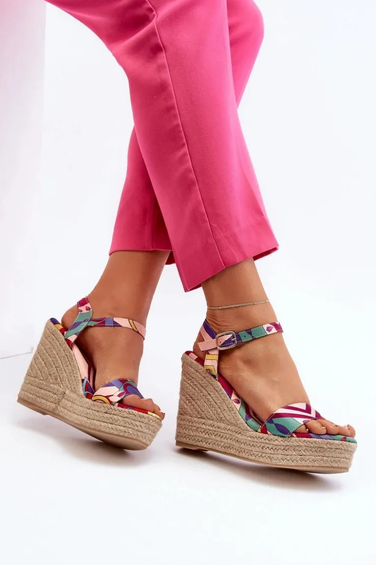 Sandały damskie na platformie i koturnie z jutową plecionką to wyjątkowy dodatek do letnich stylizacji. Zapinane na regulowany pasek ze sprzączką, zapewniają doskonałe dopasowanie. Ich wzorzysty design i wykonanie z materiału tekstylnego dodają oryginalności i świeżości każdej letniej kreacji. Idealnie komponują się zarówno z sukienkami, jak i spódnicami oraz spodniami! Przy wyborze rozmiaru prosimy sugerować się tabelą rozmiarów.