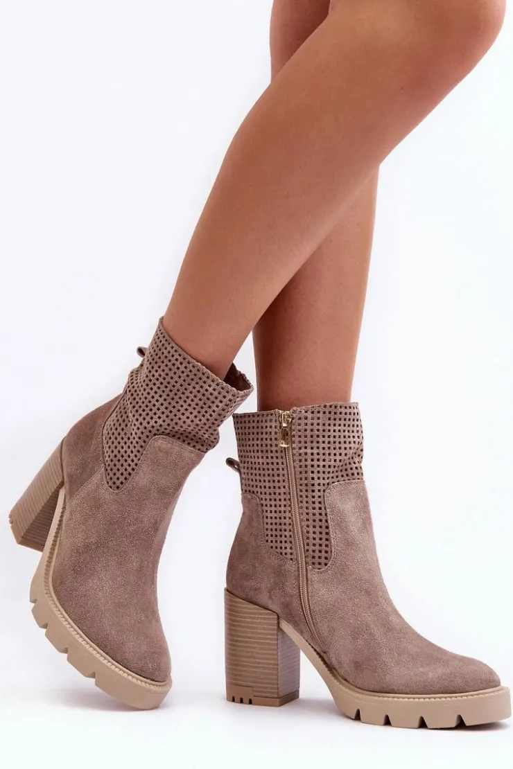 Modne, ażurowe botki na obcasie w postaci słupka zostały wykonane z wysokiej jakości skóry naturalnej. Zapinane na suwak z boku cholewki. Miękka, niezwykle wygodna wkładka została wykonana również z naturalnej skóry. Świetny model do wielu stylizacji! Przy wyborze rozmiaru prosimy sugerować się tabelą rozmiarów.