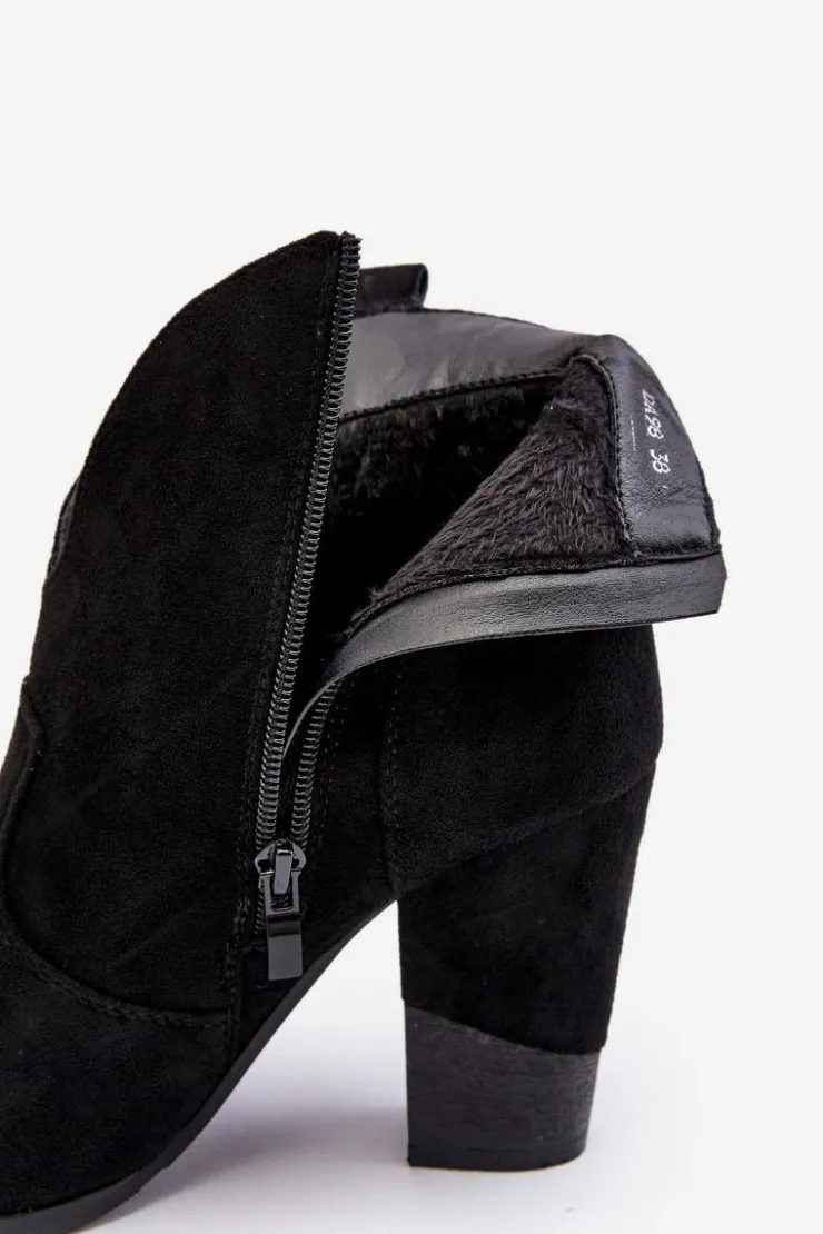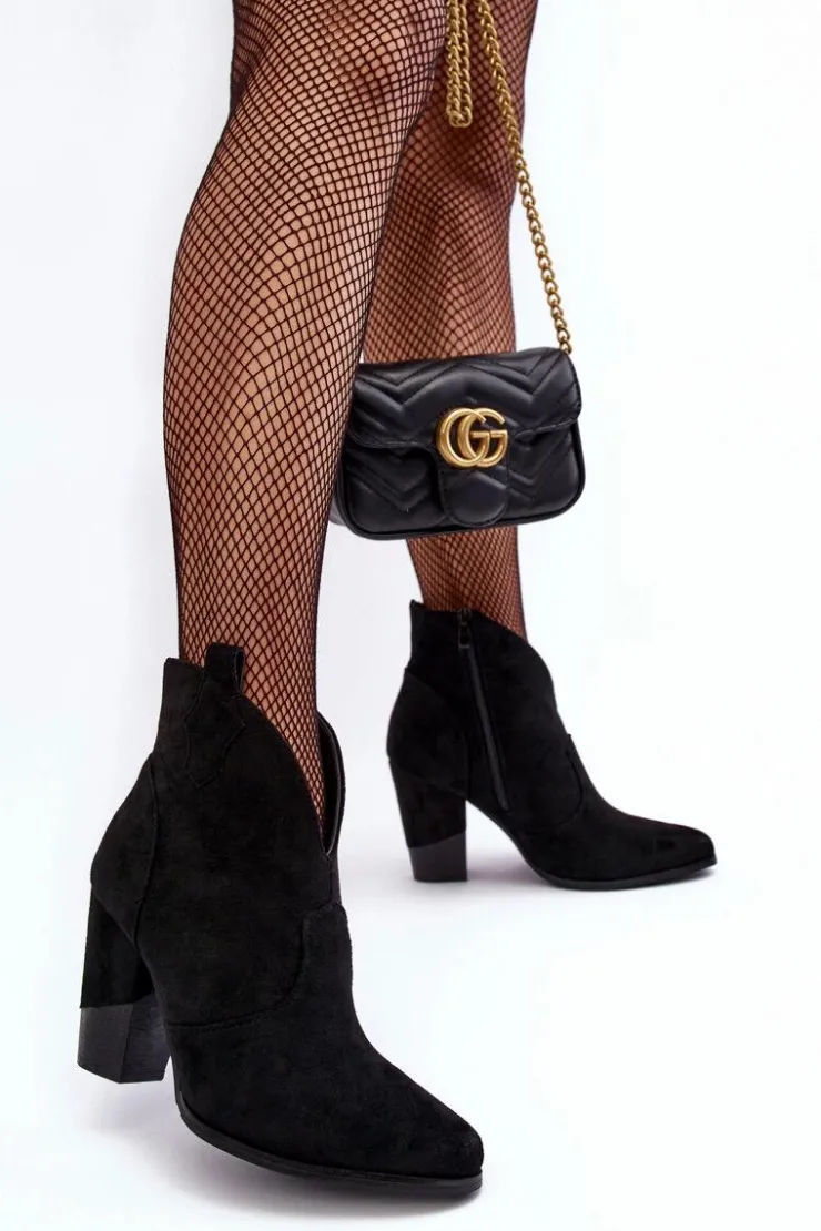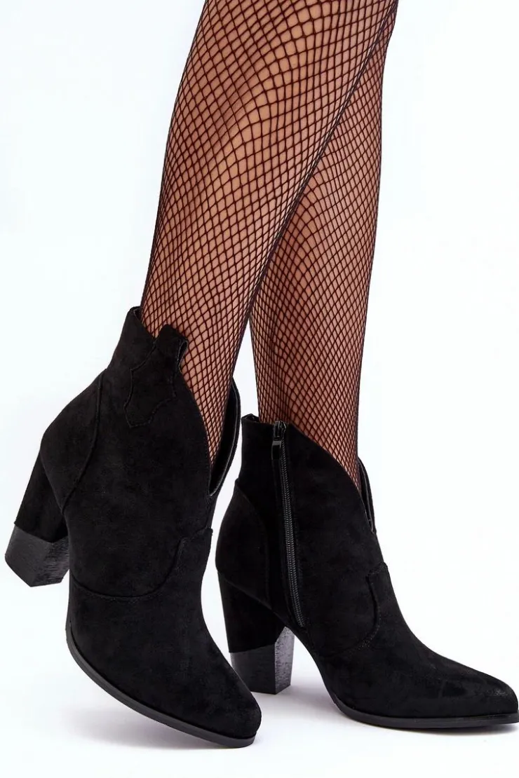 Botki w stylu kowbojek zostały wykonane z eko zamszu. Osadzone na obcasie w postaci słupka. Zapinane na suwak po wewnętrznej stronie. Noski w szpic optycznie wysmuklą nogi. Środek ocieplony kocem obuwniczy. Model ten będzie idealnym dopełnieniem jesienno-zimowych stylizacji! Przy wyborze rozmiaru prosimy sugerować się tabelą rozmiarów.