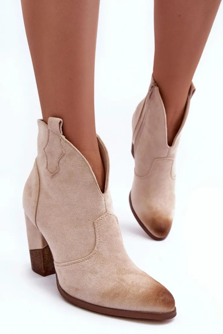 Botki w stylu kowbojek zostały wykonane z eko zamszu. Osadzone na obcasie w postaci słupka. Zapinane na suwak po wewnętrznej stronie. Noski w szpic optycznie wysmuklą nogi. Środek ocieplony kocem obuwniczy. Model ten będzie idealnym dopełnieniem jesienno-zimowych stylizacji! Przy wyborze rozmiaru prosimy sugerować się tabelą rozmiarów.