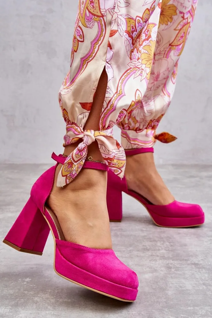 Wyjątkowe czółenka wykonane z wysokiej jakości eko skóry. Posiadają regulowany pasek zapinany na sprzączkę. Osadzone na masywnym, wyższym obcasie w postaci klocka. Zapiętek jest usztywniany, a nosek kwadratowy. Miękka wkładka z eko skóry zapewni wygodę podczas użytkowania. Dodatkowo buty posiadają delikatną platformę. Przy wyborze rozmiaru prosimy sugerować się tabelą rozmiarów.