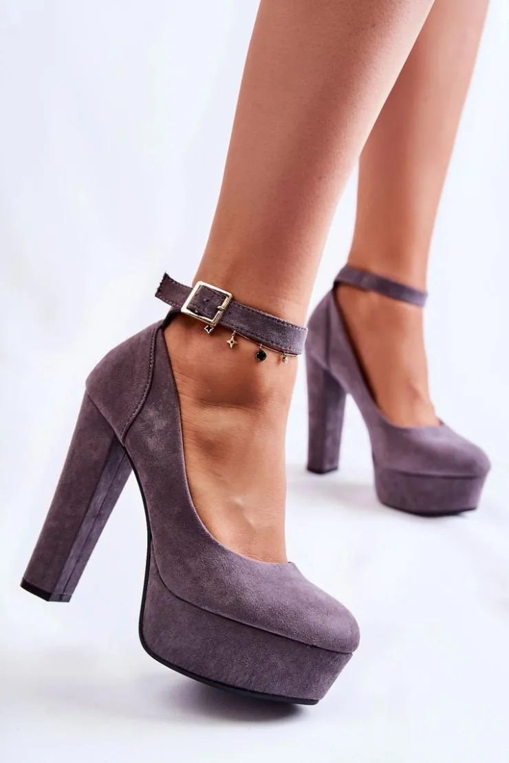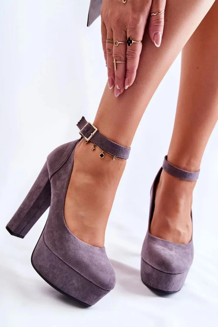 Czółenka zostały wykonane z eko zamszu. Wysoki obcas oraz platforma uniesie delikatnie sylwetkę. Miękka wkładka wykonana z eko skóry zapewnia komfort i wygodę podczas użytkowania. Czółenka zapinane na sprzączkę z regulowanym paskiem. Posiadają usztywniany zapiętek. W tych butach na pewno wyróżnisz się z tłumu! Koniecznie sprawdź także pozostałe nasze czółenka! Przy wyborze rozmiaru prosimy kierować się tabelą rozmiarów
