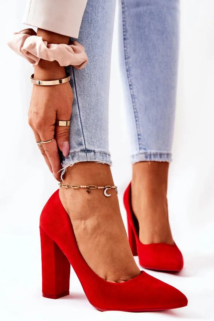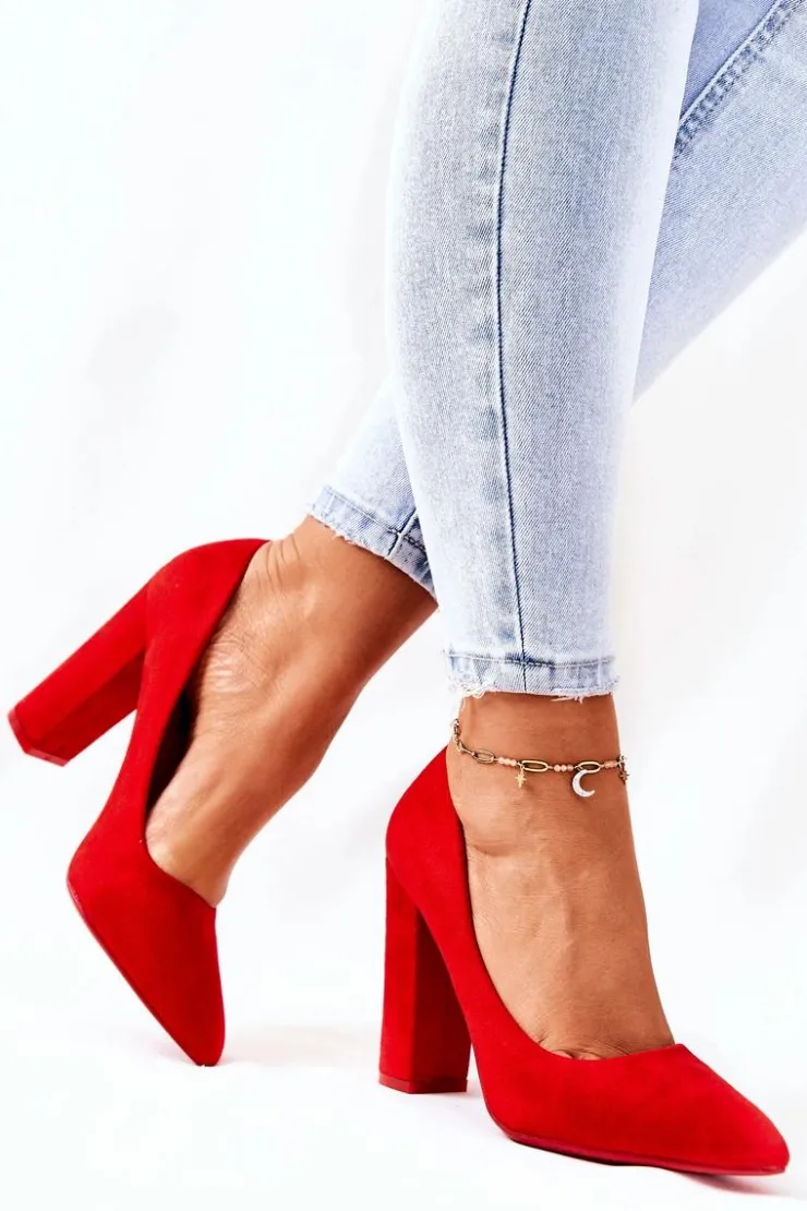 Damskie Boto Zamszowe Czółenka Na Słupku Czerwone Valoris