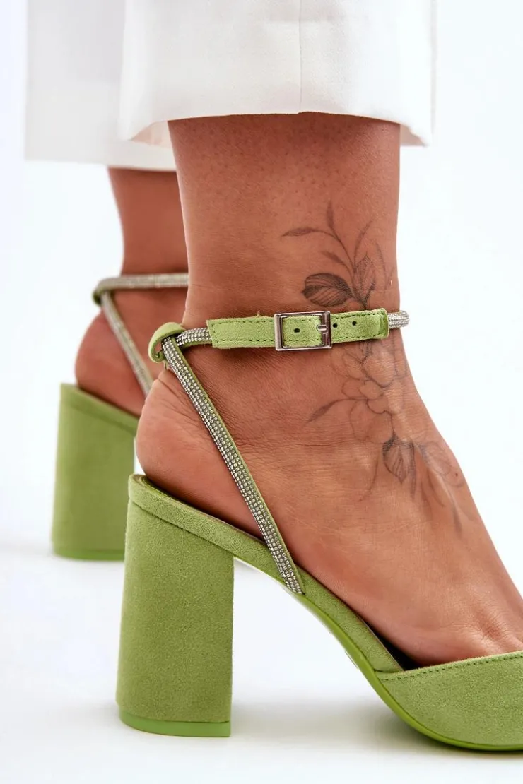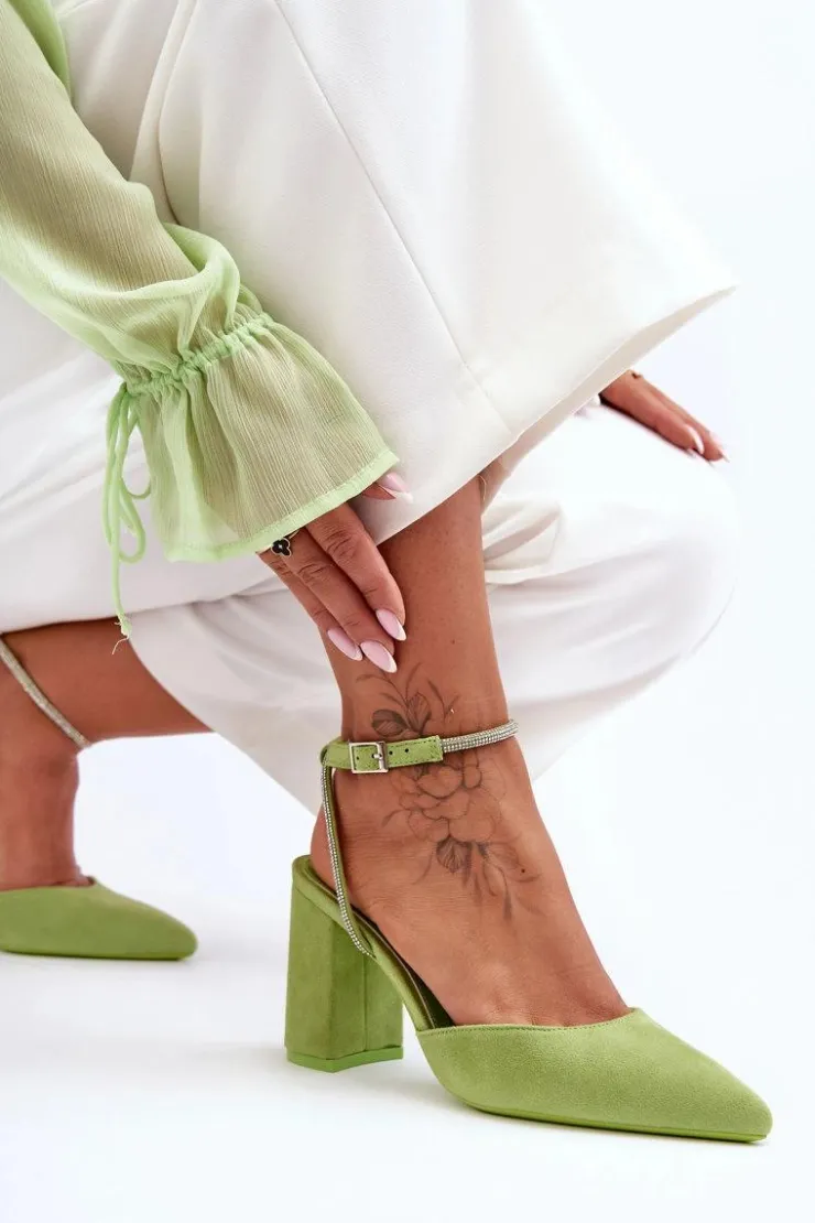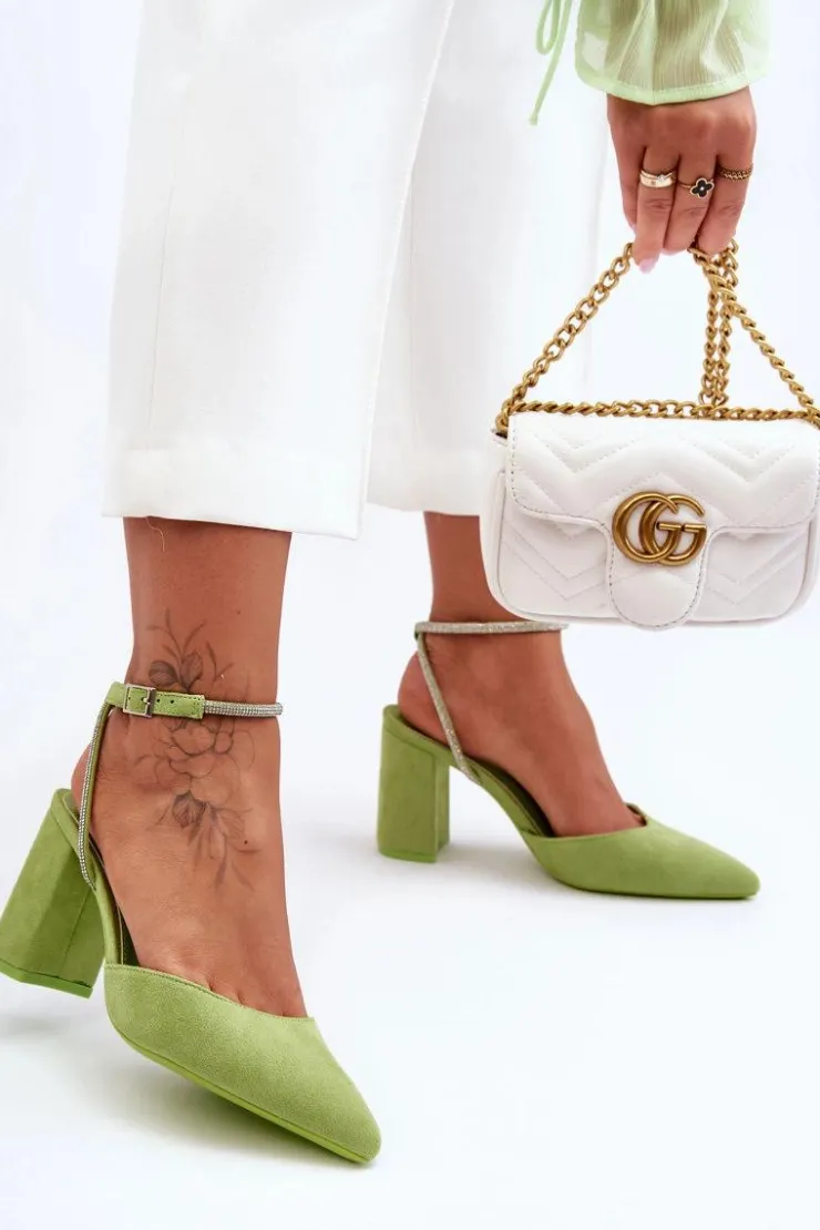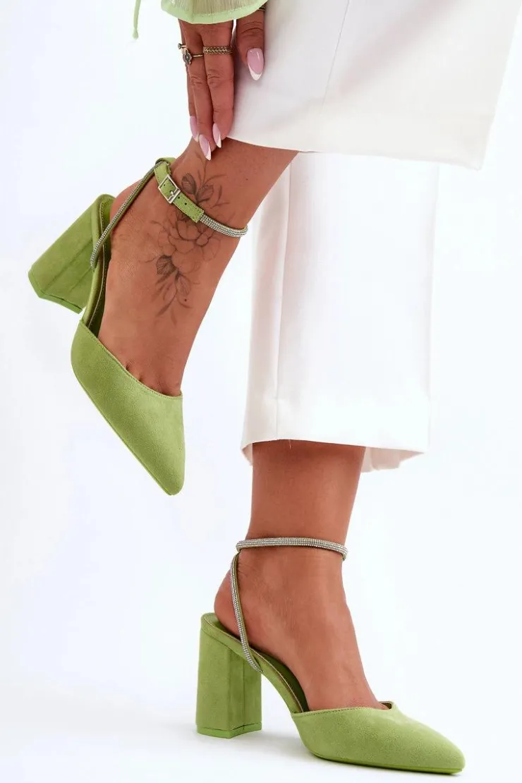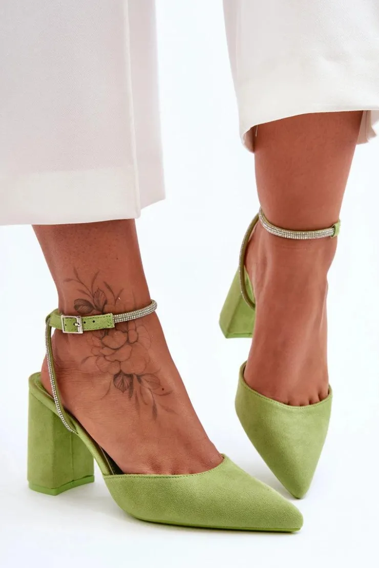 Damskie Boto Zamszowe Czółenka Z Ozdobnym Paseczkiem Zielone Lirosa