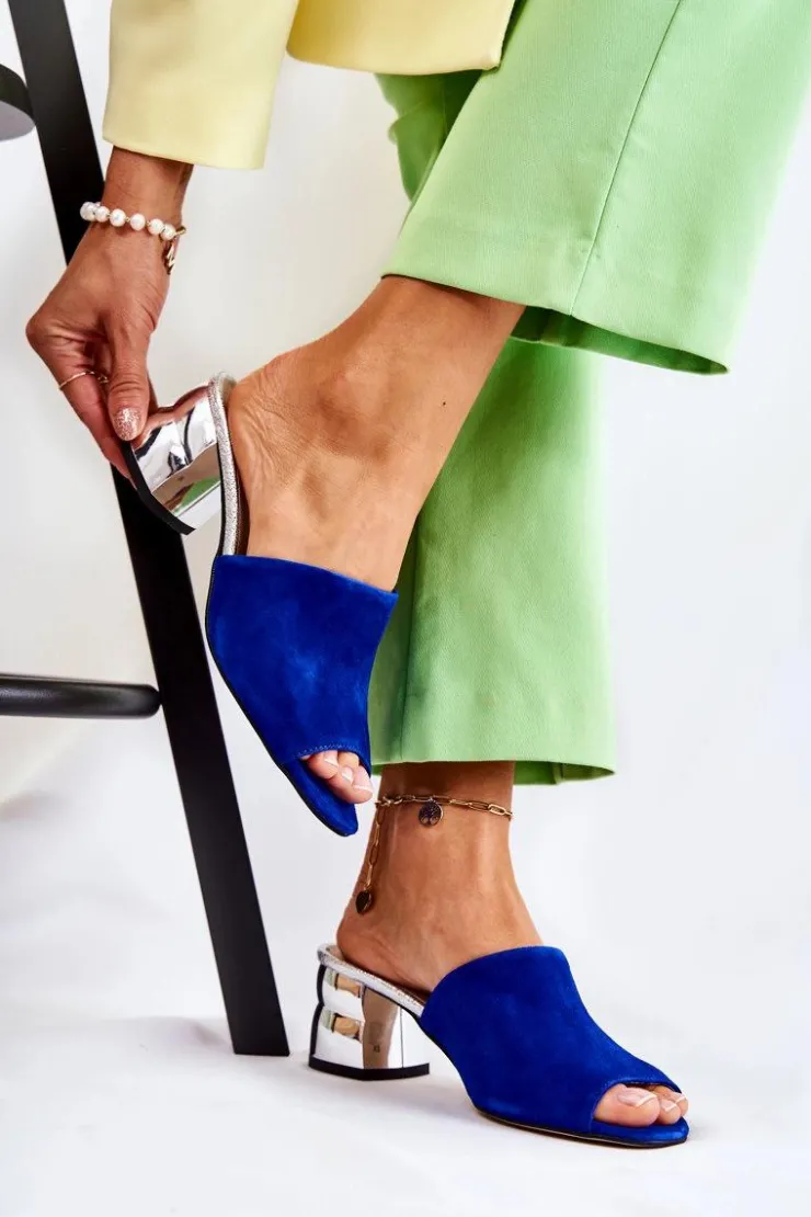 Modne, a zarazem wygodne klapki damskie zostały osadzone na obcasie w postaci klocka. Cholewka wykonana z naturalnego zamszu. Nosek odkryty, zaokrąglony. Miękka wkładka została wykonana z naturalnej skóry. Model klasyczny, wsuwany. Świetnie sprawdzą się do wielu stylizacji. Idealnie dopasują się do tęgości nogi, dzięki skórzanej wyściółce. Spraw sobie radość kupując nową parę butów, które będą idealne na letnie dni! Przy wyborze rozmiaru prosimy sugerować się tabelą rozmiarów.
