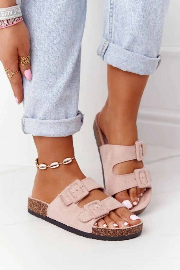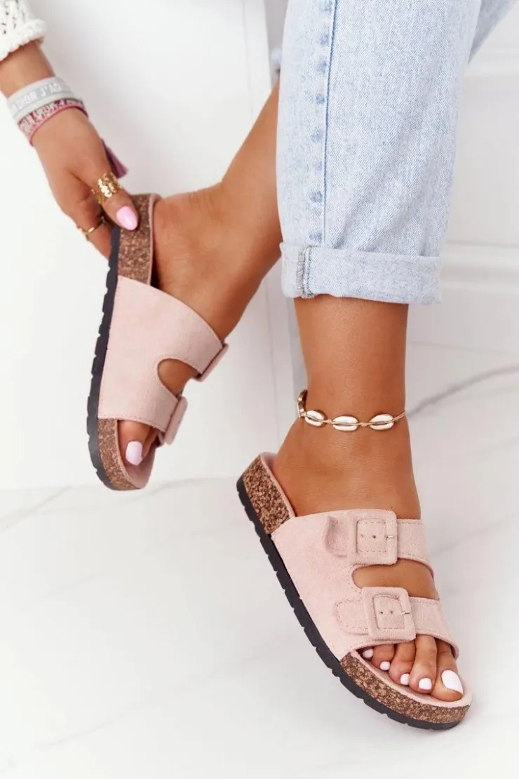 Damskie Boto Zamszowe Klapki Na Korkowej Podeszwie Jasnoróżowe Jennifer