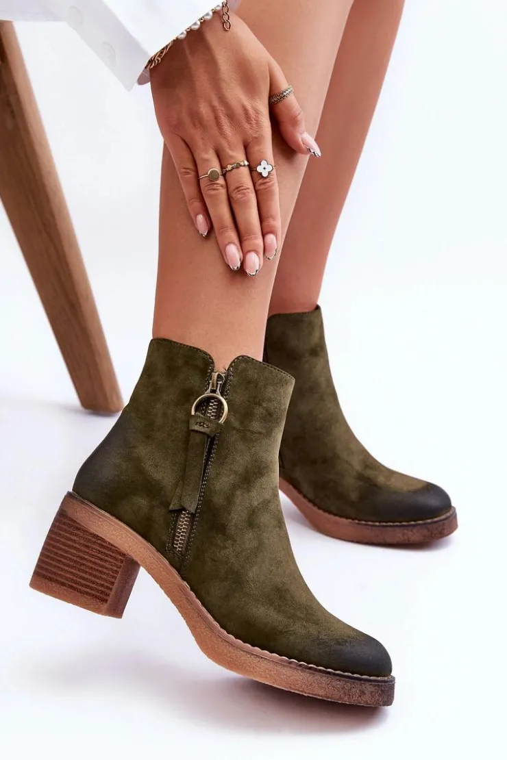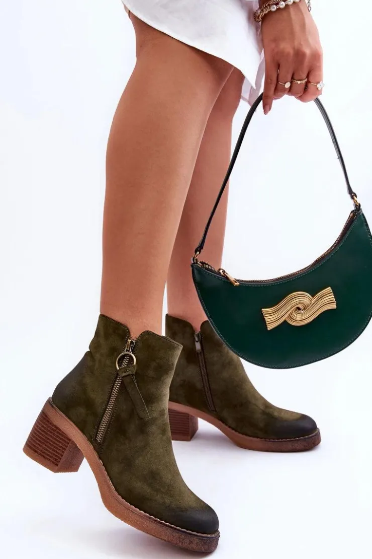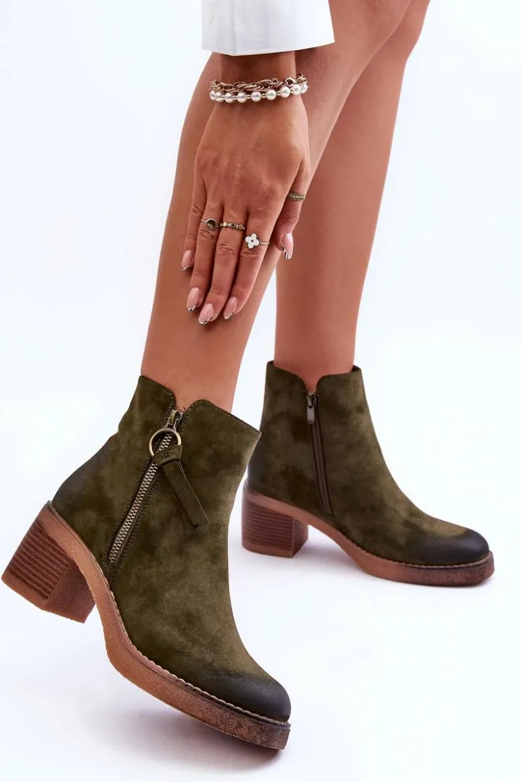 Damskie Boto Zamszowe Klasyczne Botki Damskie Zielone Limoso
