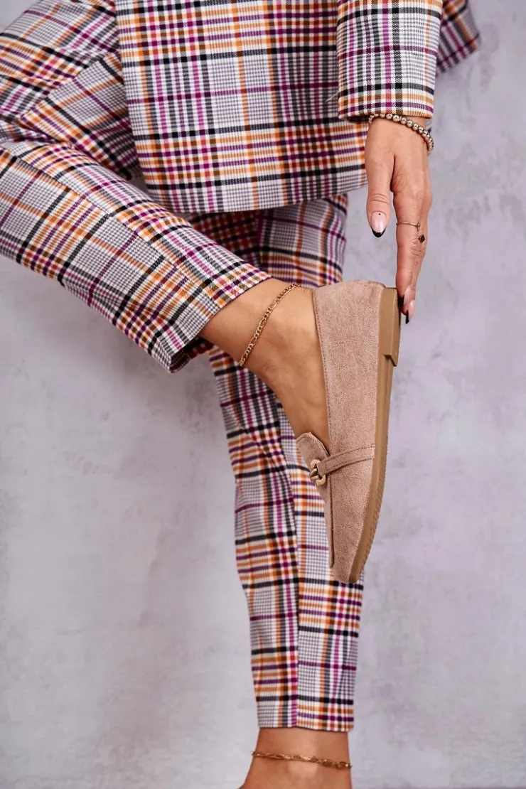 Wygodne i komfortowe mokasyny damskie z miękką wkładką z eko skóry. Wykonane z miłego w dotyku eko zamszu. Buty te posiadają ozdobę na przodzie oraz delikatnie kwadratowy nosek. Osadzone na płaskim obcasie. Klasyczny model, idealny do wielu stylizacji! Koniecznie sprawdź także pozostałe modele mokasyn dostępnych w naszej ofercie! Przy wyborze rozmiaru prosimy sugerować się tabelą rozmiarów.