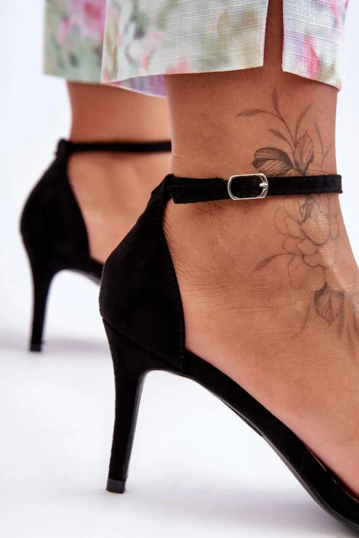 Klasyczne sandały zostały wykonane z eko zamszu. Posiadają usztywniany zapiętek. Model z odkrytym, zaokrąglonym noskiem. Sandały zapinane są wokół kostki na regulowany pasek ze sprzączką. Miękka wkładka wykonana z eko skóry pozwoli na komfortowe użytkowanie. Przy wyborze rozmiaru prosimy sugerować się tabelą rozmiarów.