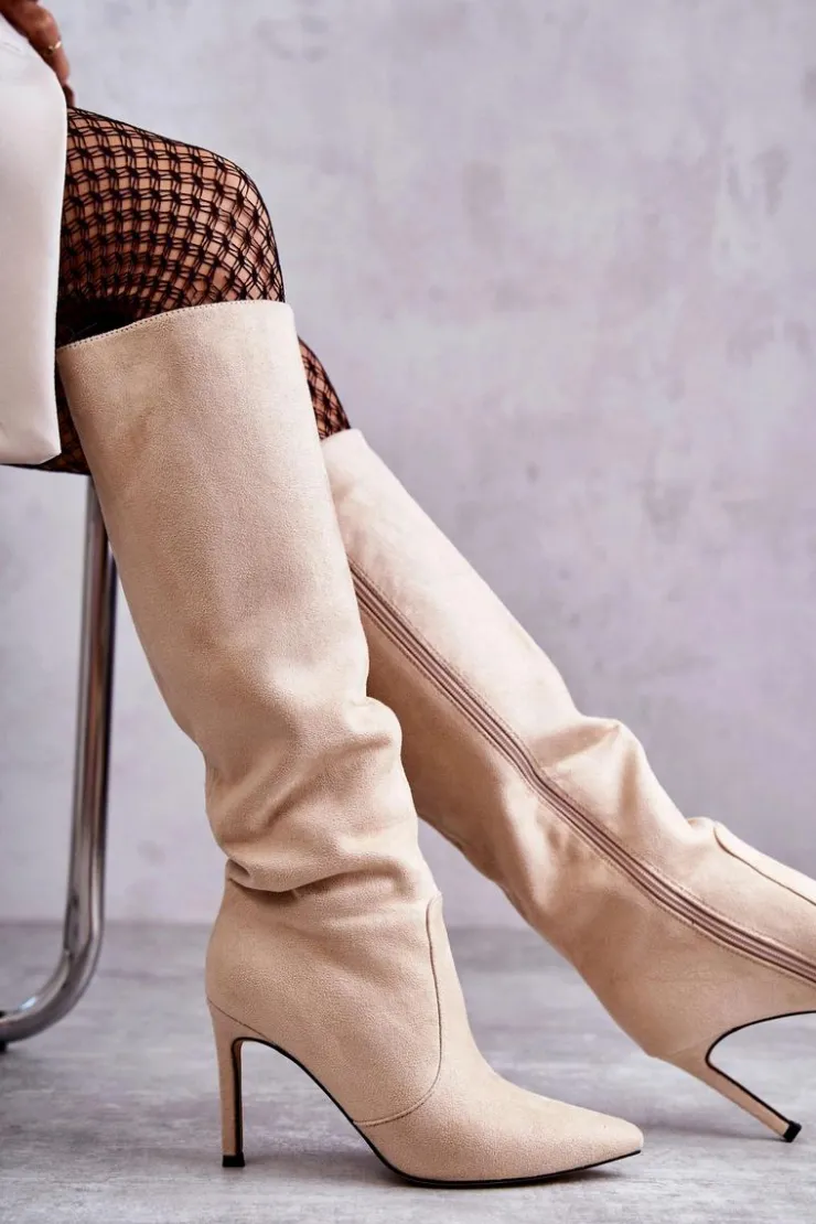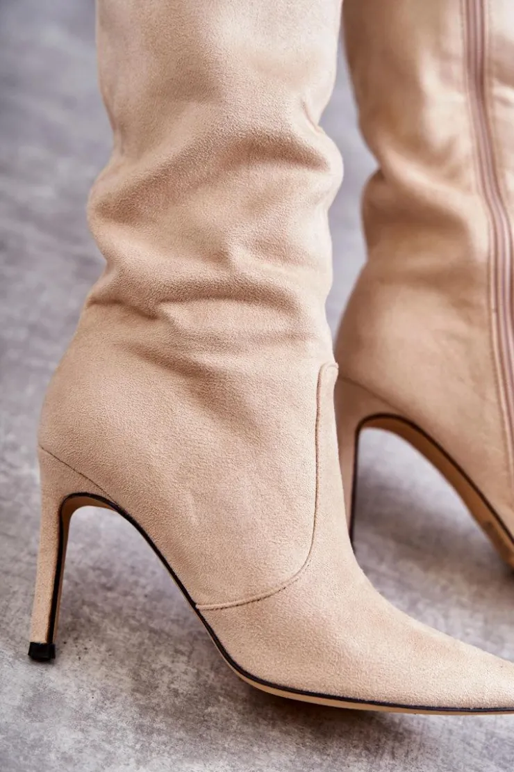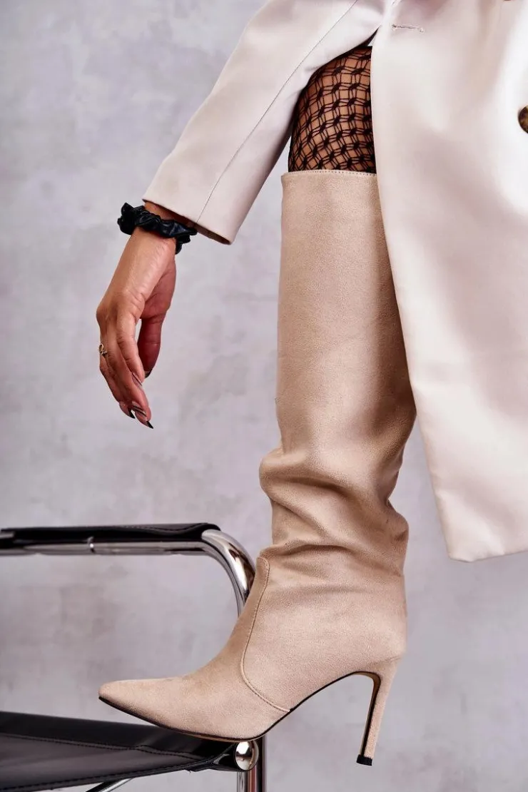 Piękne, klasyczne kozaki damskie wykonane z przyjemnego w dotyku eko zamszu. Posiadają na całej długości suwak ułatwiający zakładanie obuwia. Buty osadzone na obcasie w postaci szpilki z noskiem w szpic świetnie wysmuklą nogi. Posiadają ocieplenie w postaci koca obuwniczego. Zapiętek w tych kozakach jest usztywniany. Model ten powinien znaleźć się w Twojej szafie! Przy wyborze rozmiaru prosimy sugerować się tabelą rozmiarów.